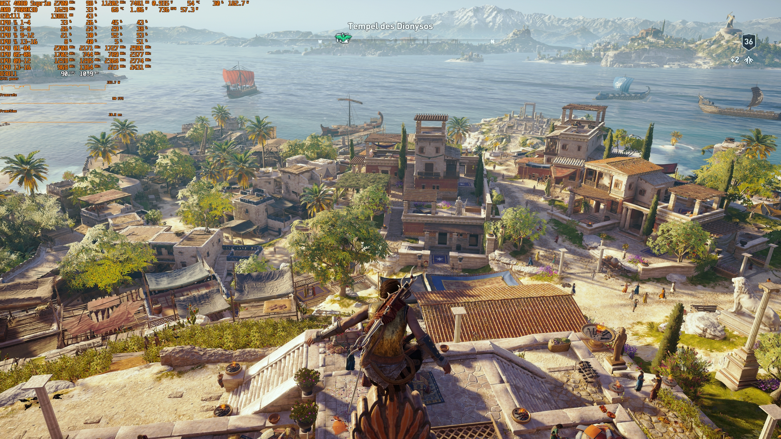 Die CPU hingegen bei 60 FPS langweilt sich (zurecht) eher: knappe 40 Watt sind für meine Spiele und bei nur 60 FPS tatsächlich schon eher im oberen Bereich dessen, was mein 12600K sonst so benötigt (es gibt noch härtere Ausnahmen wie z.B. Starfield, wo's auch mal dreistellig werden kann), aber durch die 60 FPS habe ich hier immer noch massig Overhead. In den meisten nicht CPU-lastigen Spielen wie RPGs oder Open World Sandbox Games braucht mein 12600K eher so 10-25 Watt für 60 FPS.