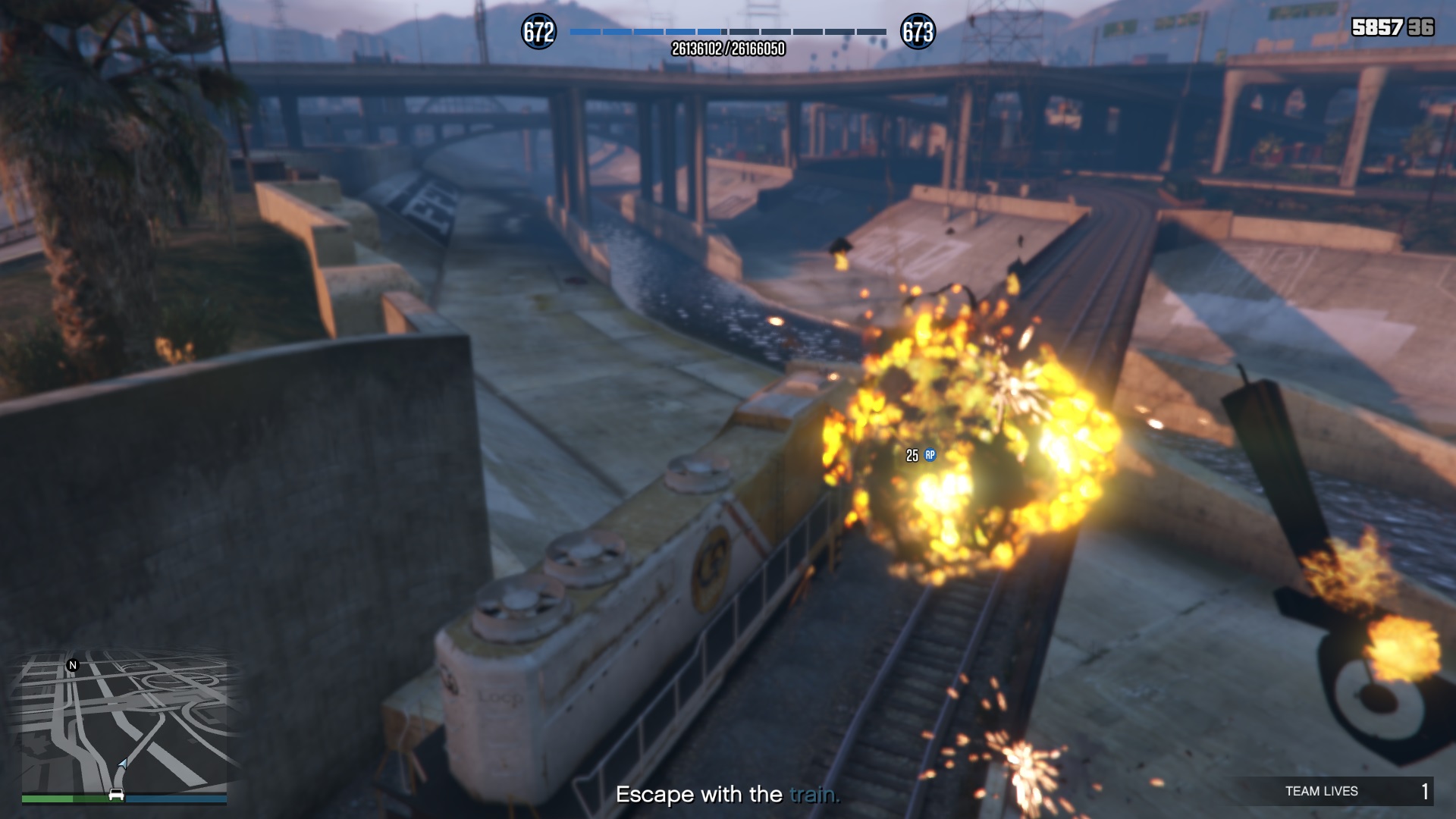 "unser heli hat ne 40mm-MK mit HE-munition und zwei gatling-MGs, wie stoppen wir den zug am besten?" - "indem wir uns vor dem auf die gleise stellen!" - "genial!"