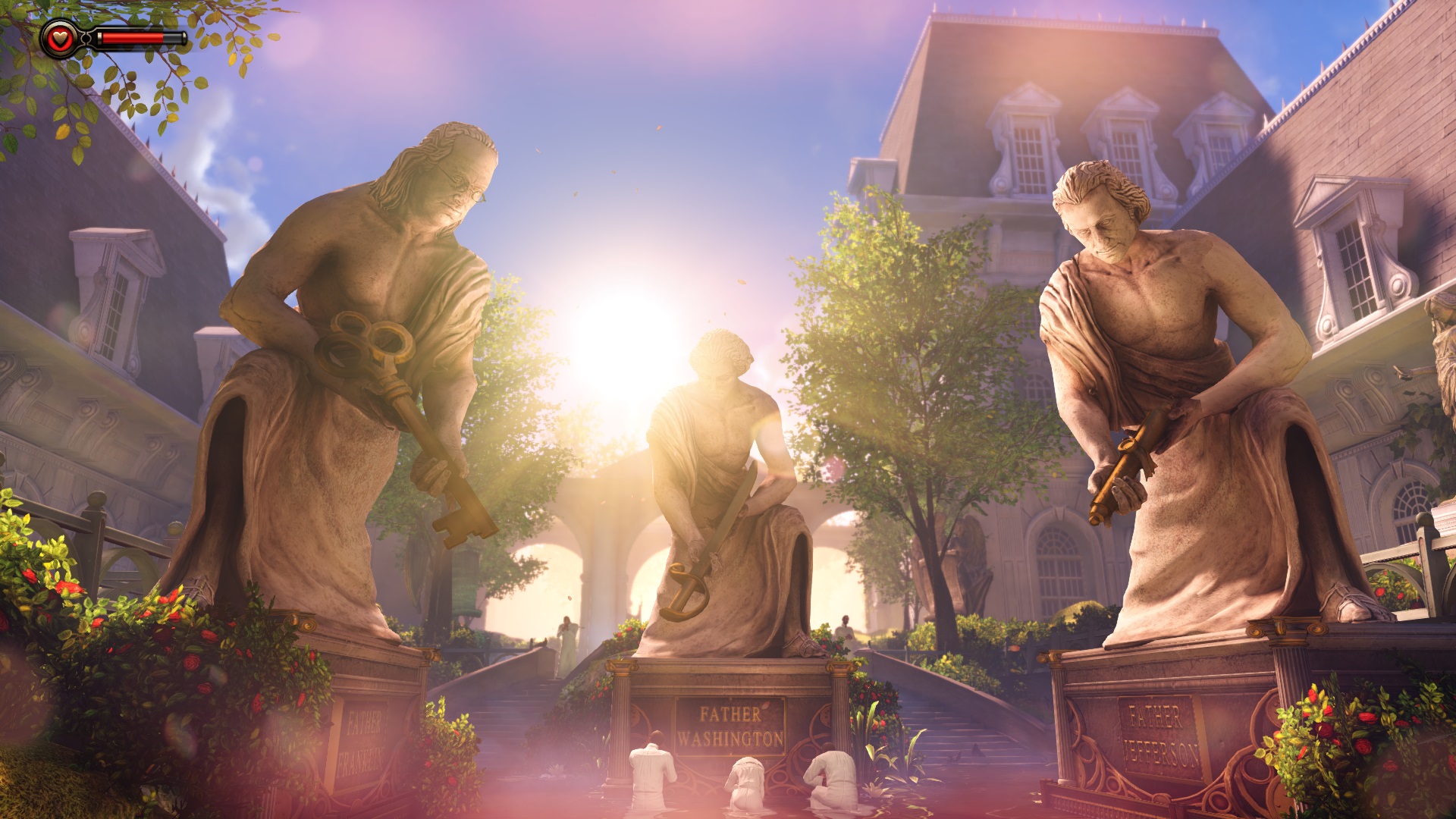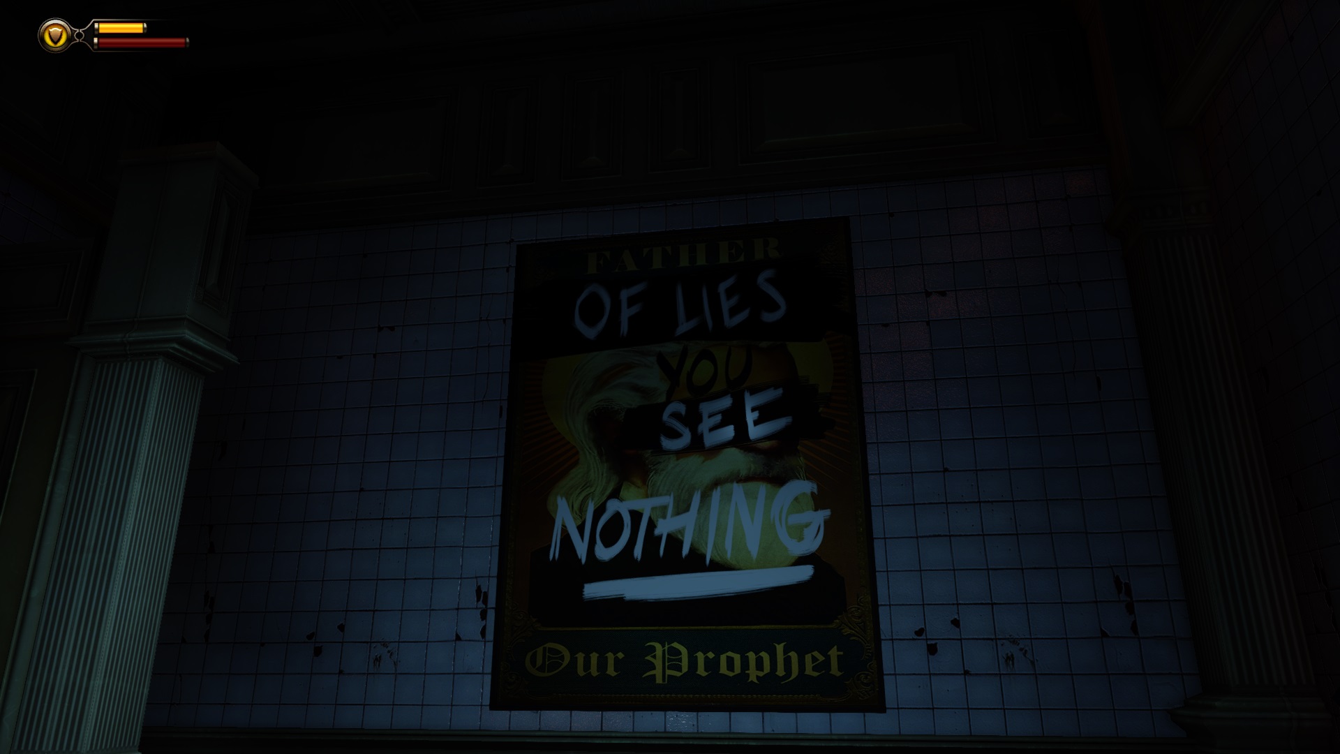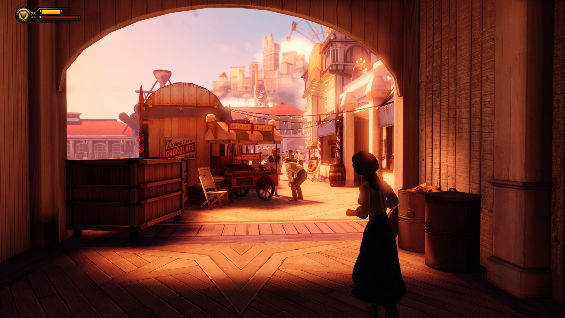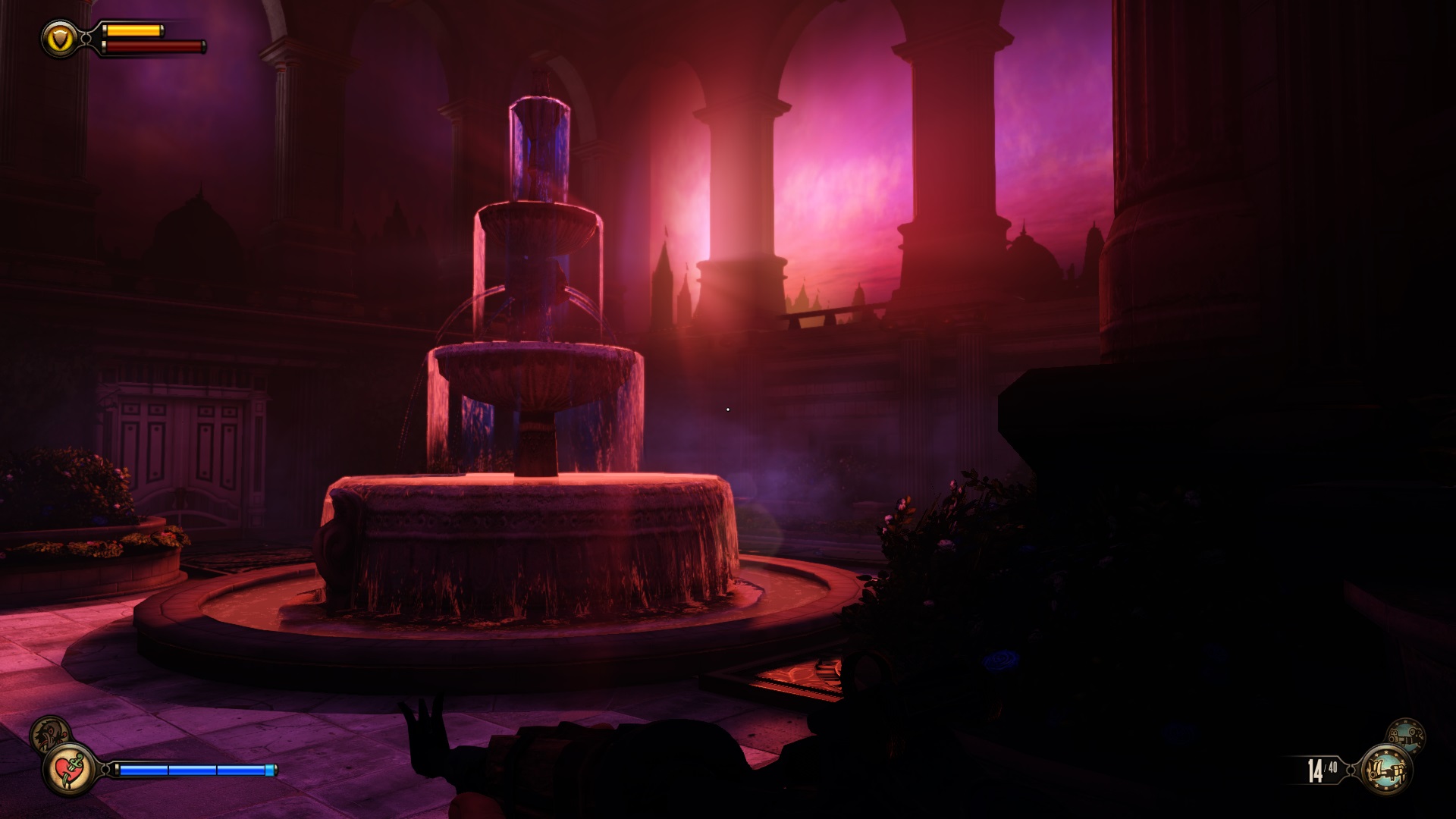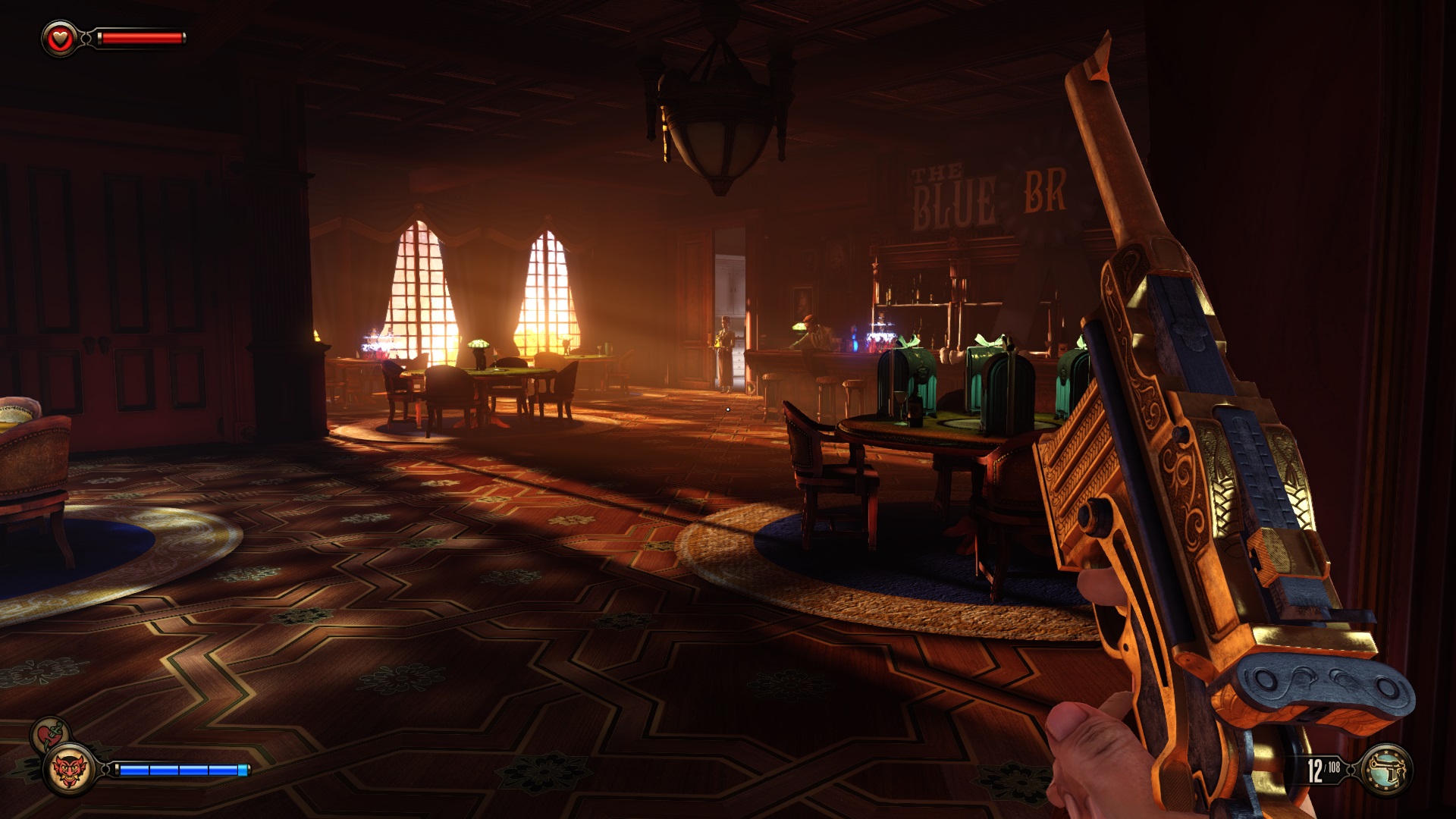 und um dann auch mal wieder den bildauftrag zu erfüllen nachdem auf dieser seite bisher nur gelabert wurde (hust): vorletzten freitag hatte ich mir BioShock Infinite im sale gekauft nachdem ich immer wieder mal (sehr) gutes über das game gehört hatte. samstag vormittag dann mal reingeschaut... und 10 stunden am stück gezockt. sonntag dann nochmal knapp 10. hauptspiel wurde im letzten drittel zunehmend verwirrend und das ende gefiel mir nicht sonderlich, unterm strich hatte ich aber durchaus spaß. der story-DLC dagegen... ich wünschte ich hätte den nicht gespielt, der hat mich doch einigermaßen verstört und deprimiert. genug gelabert, endlich bilder: