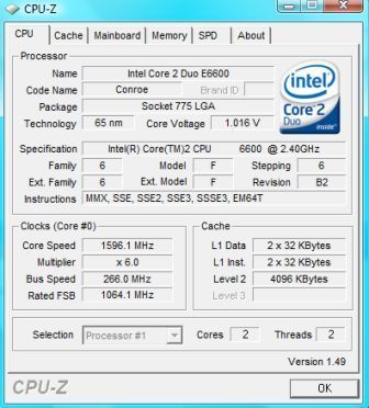 es ist ein E6600 der eigentlich bei 2,4 ghz laufen sollte ABER programme wie cpu-Z und ähnliche sagen das er nur mit 1,6 ghz läuft