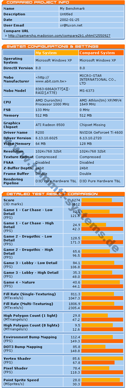 Also ich weis nicht, glaube dieser Screenshot "GF4Ti4600 vers. Radeon8500" ist ein Fake. Fake sag ich mal...