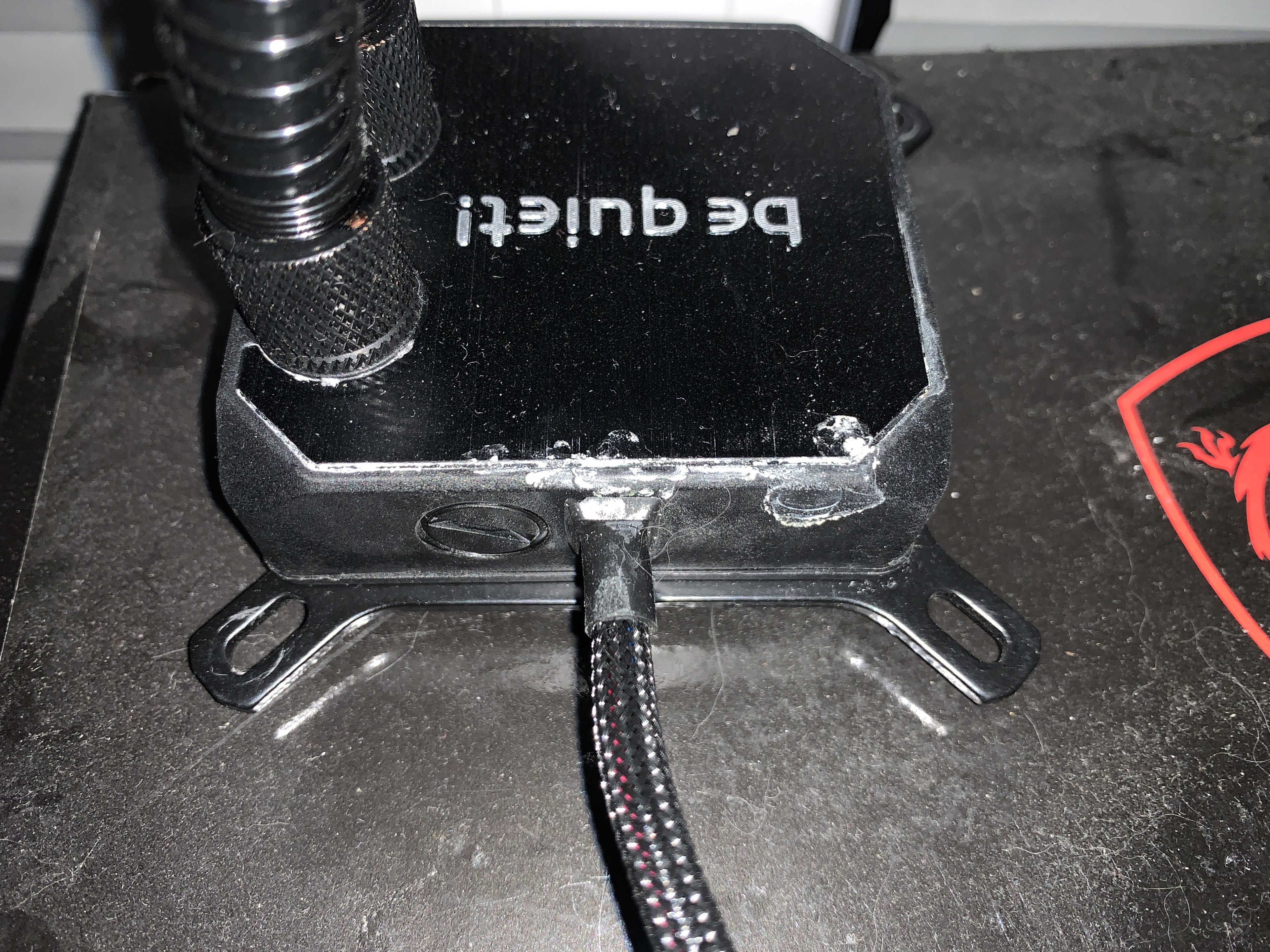 - Weiße Ablagerung am CPU Kühlerblock der Bequiet Wasserkühlung.