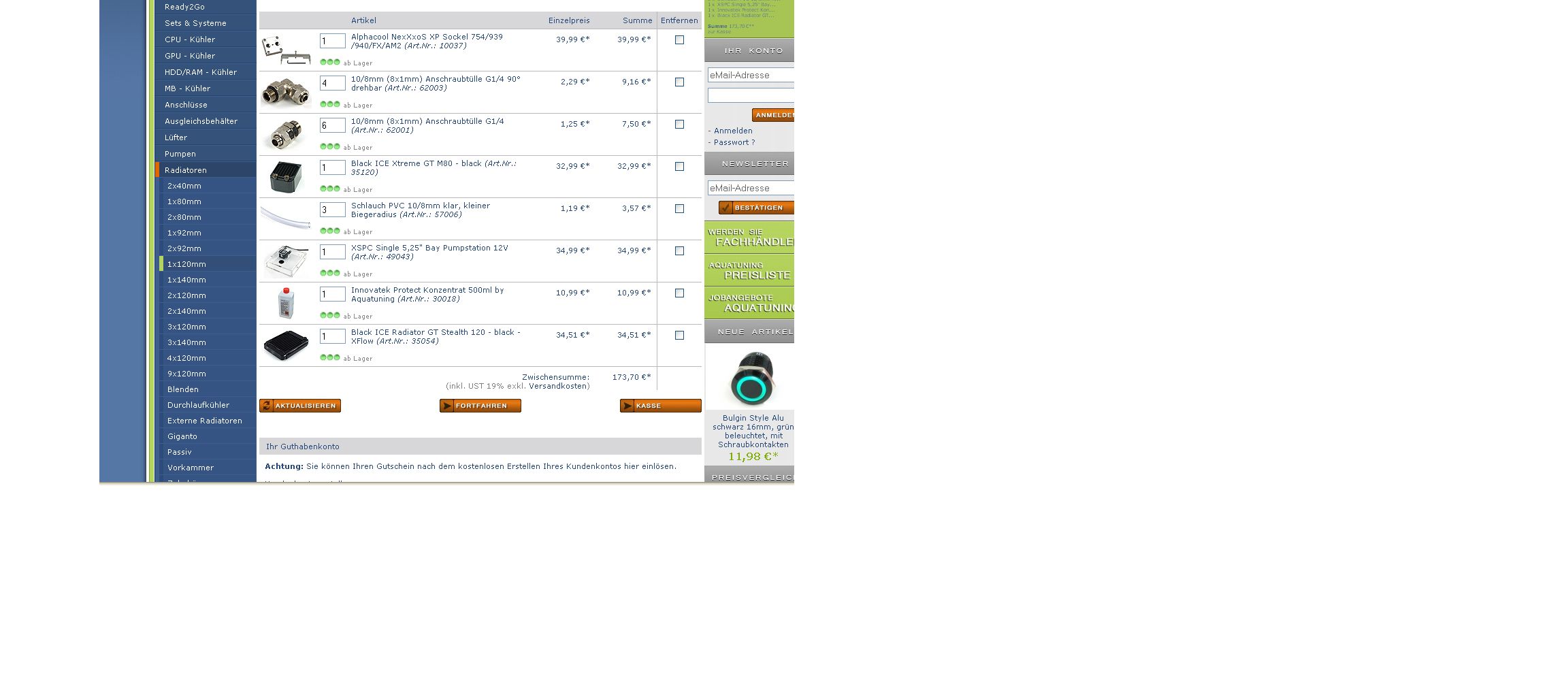 Mit der Wasserkühlung wollte ich mich nun praktisch mal beschäftigen und hier nen vernünftigen Einstieg finden und dann bei meinem System besser machen