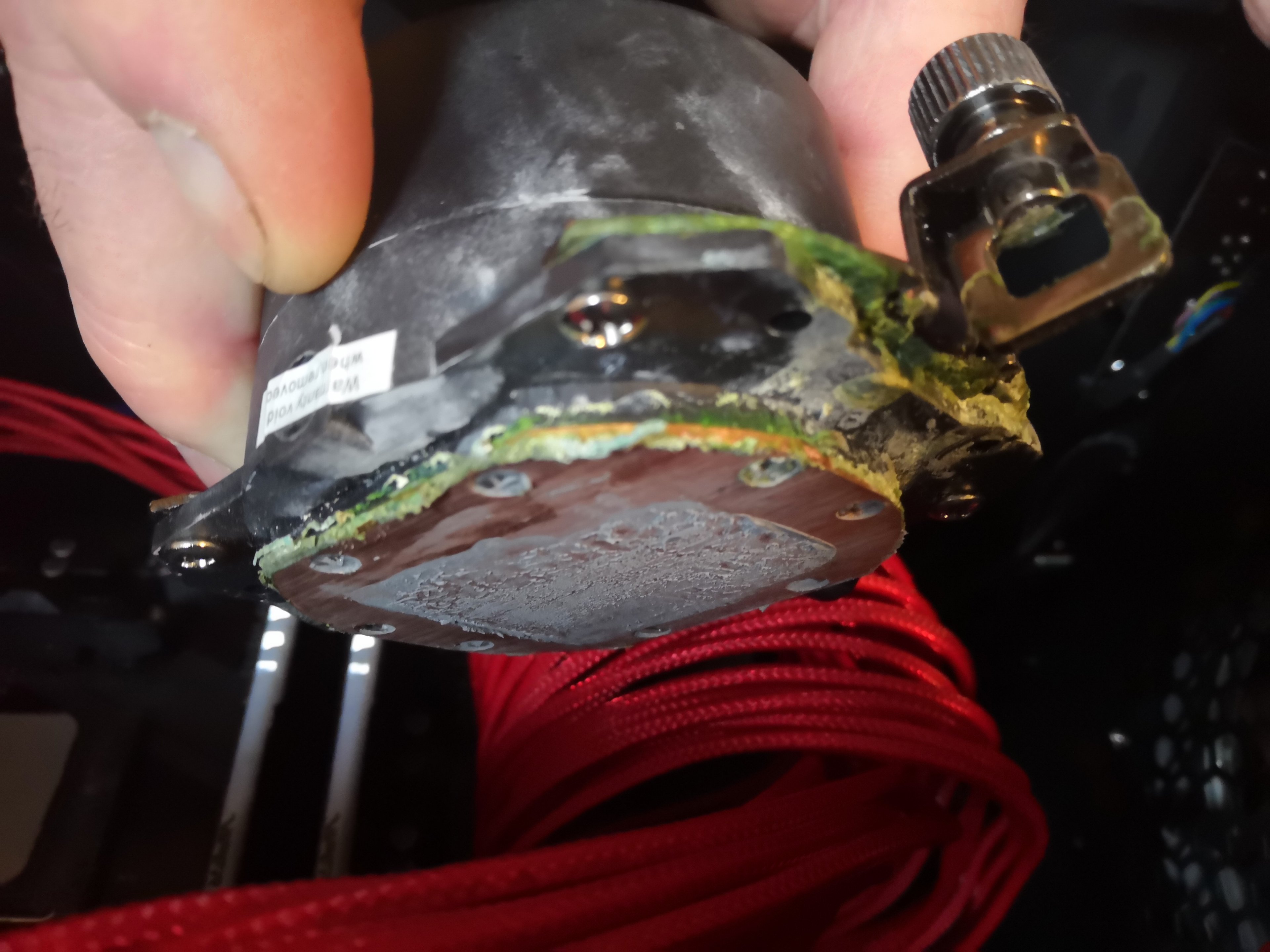 Sieht für mich nach dem fast gleichen Schaden aus den auch der Thread Ersteller hatte, zudem auch bei einer Cooler Master AIO, ich vermute das mit den CM AIOs generell was nicht stimmt. Ist in beiden Fällen die gleiche Pumpe und das gleiche Schadensbild.