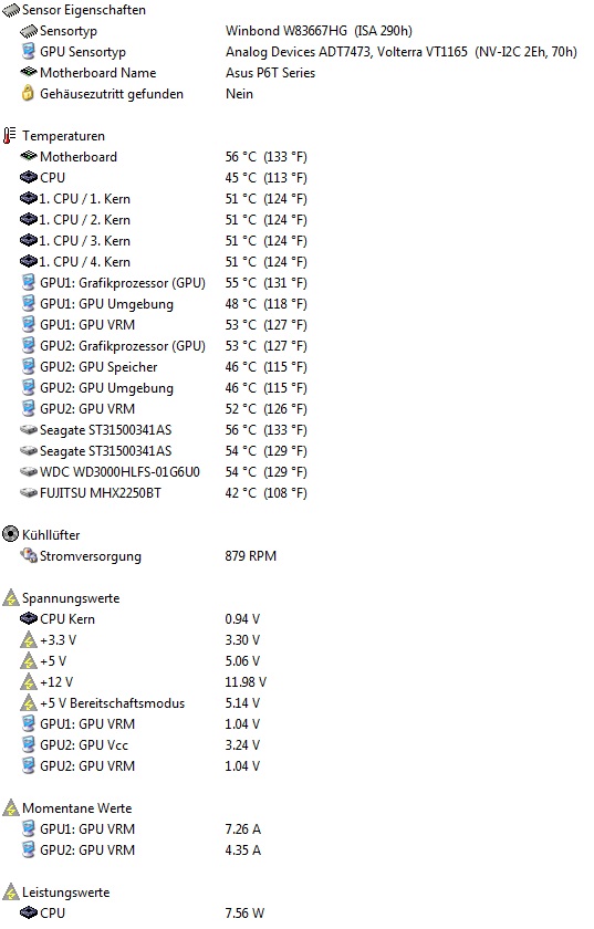 56 grad deine festplatten. so warm werden die nicht unter lukü.