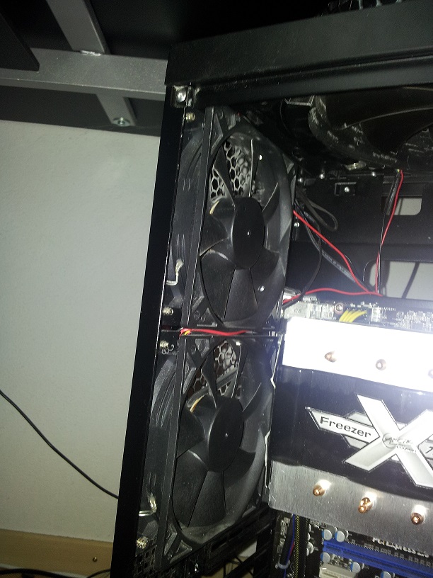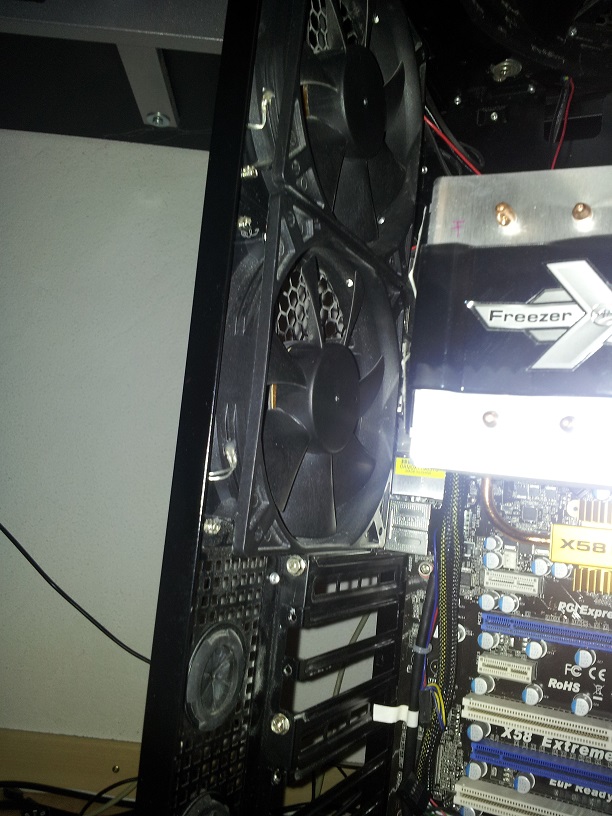 Ich lade noch ein paar Fotos hoch von den beiden aktuelle Lüftern hinten, denn dort bin ich mir nicht sicher ob der Platz für einen Radiator reicht. (GraKa Blockierung)