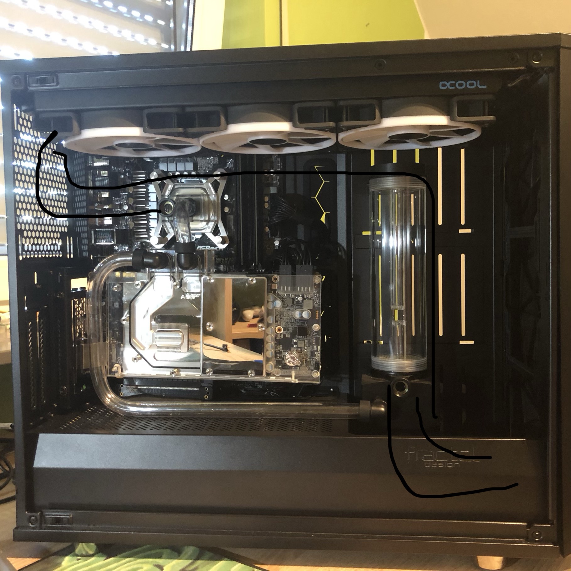 Danke für die Antwort aber ich verstehe ich nicht recht wie sie das meinen. Am Handy gibt es auch Zeichenprogramme wäre echt nett wenn sie eine Zeichnung davon machen. 😀niteaholic schrieb:Ich würde den 360er so montieren, dass der vordere HT unterhalb der Lüfter läuft, dann eine Biegung macht und so zum anderen radi gelangt, und von dort aus via S Biegung dann zur cpu gelangt, ähnlich wie bei der graka. Den hinteren würde ich dann mittels 90° stueck dann direkt runter laufen lassen, so dass er "undichtbar" bleibt.