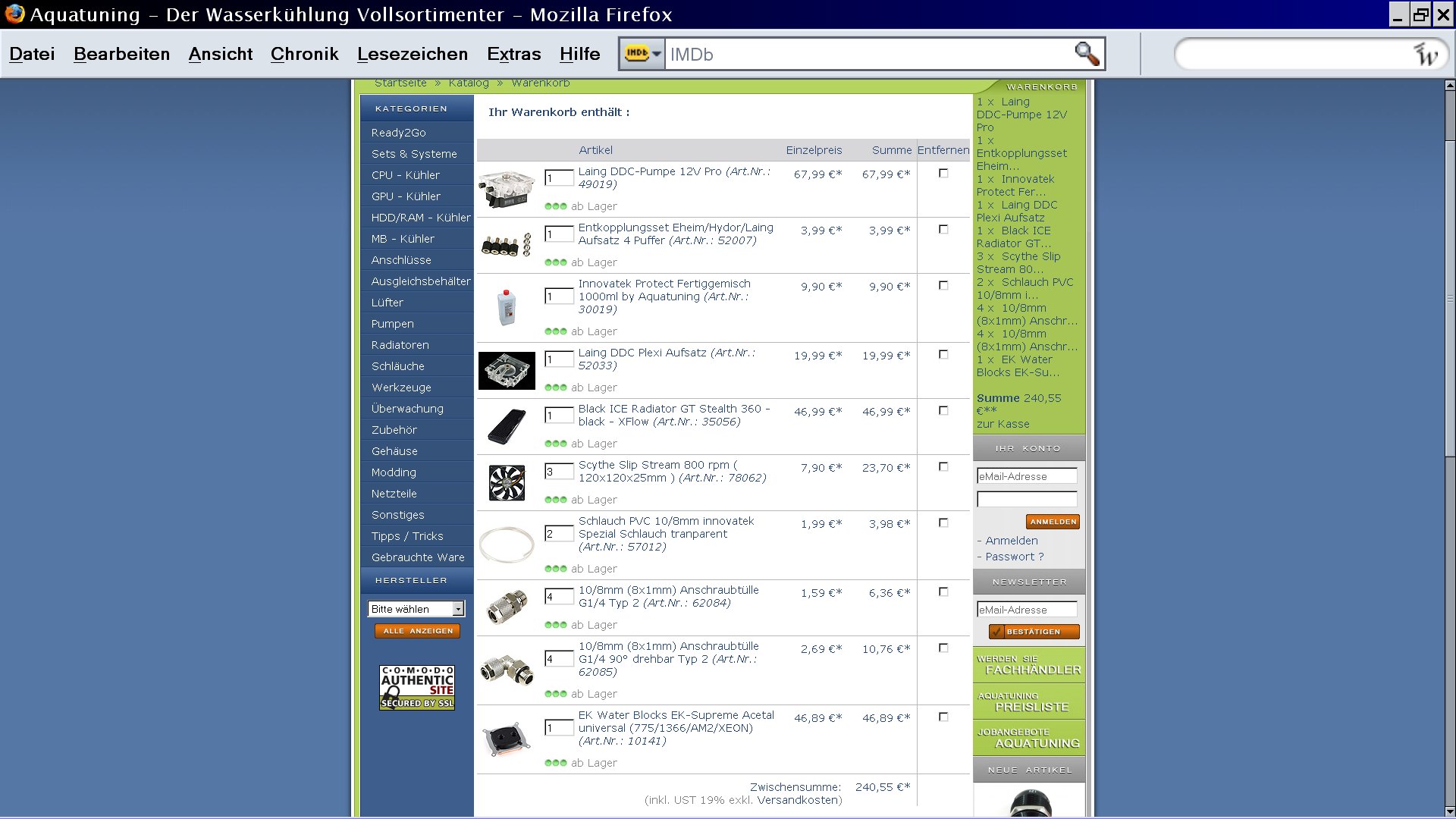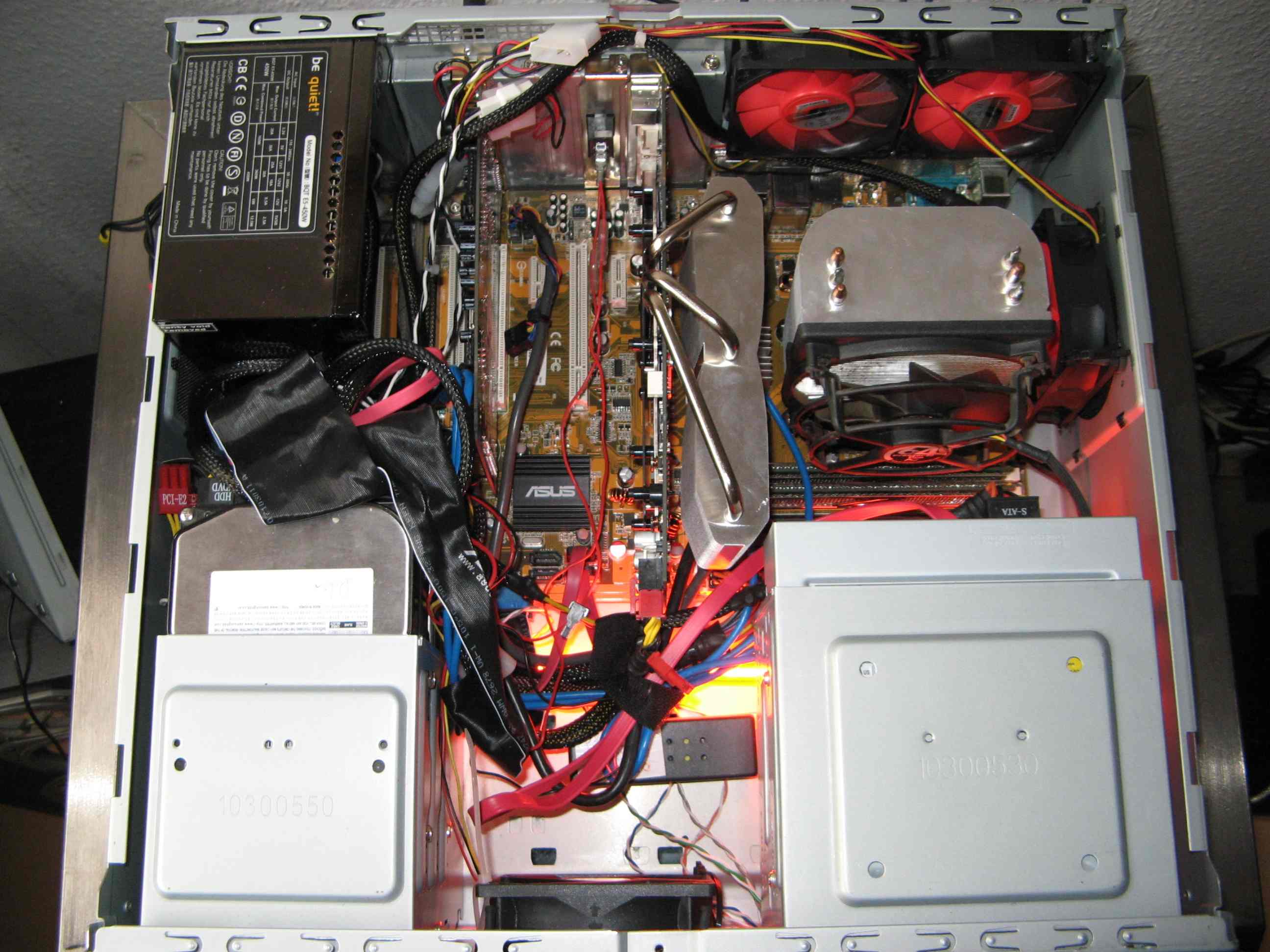 Nun habe ich mir zuerst vorgenommen, die CPU wasserzukühlen; GPU soll bei neuer Grafikkarte folgen. Da ich ausreichend Gehäuselüfter montiert habe, sollte eine Motherboardkühlung nicht notwendig sein.