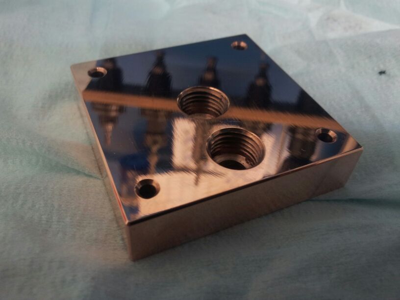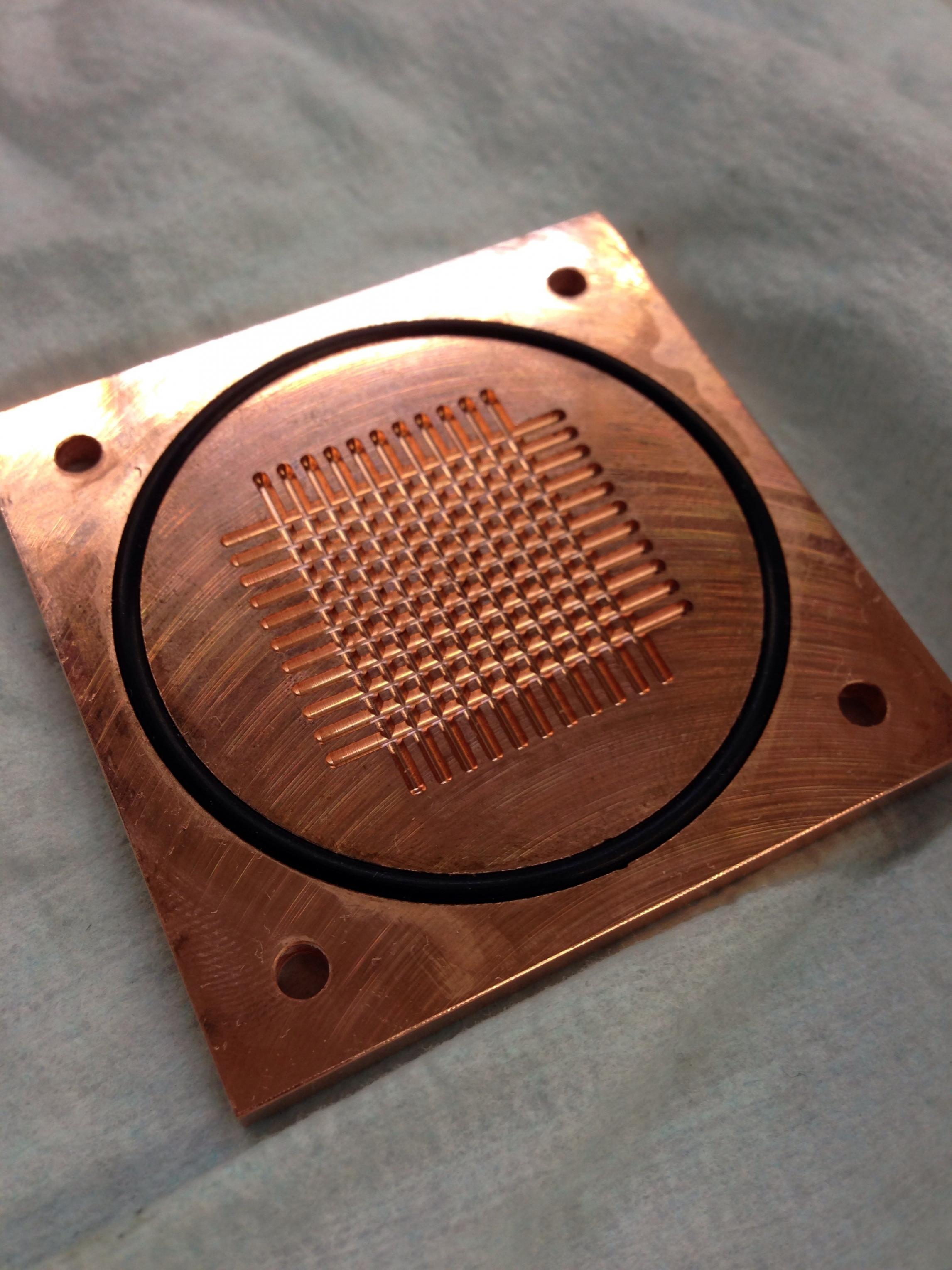 Der Kühler wurde aus E-CU Kupfer gefertigt, hat den vorteil dass es fast so gut die wärme leitet wie Silber.