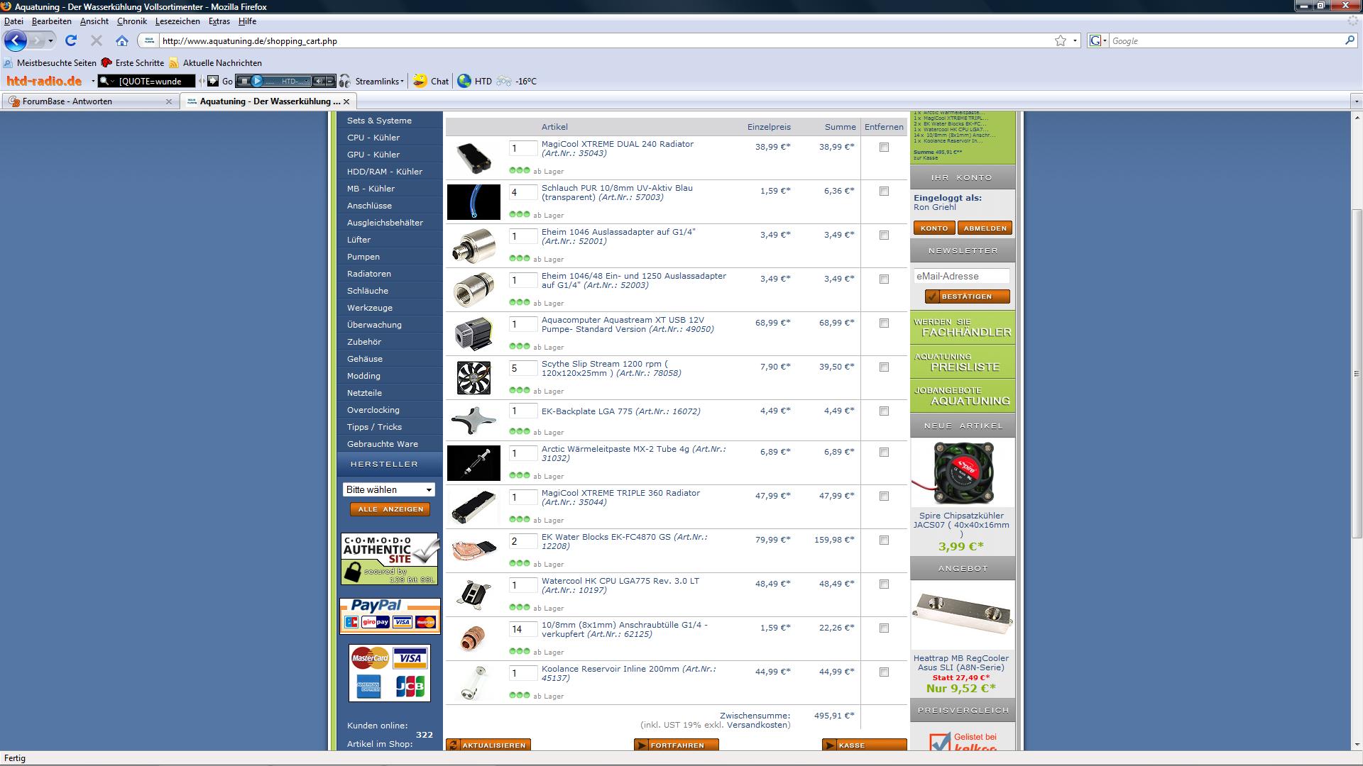 Da ich nun meine zweite 4870 drin hab ist der rechner mir einfach zu laut und ich such eine wasserkühlung, aber die wo ich immer zusammstell sind mir zu teuer komm meist um 500 euro.