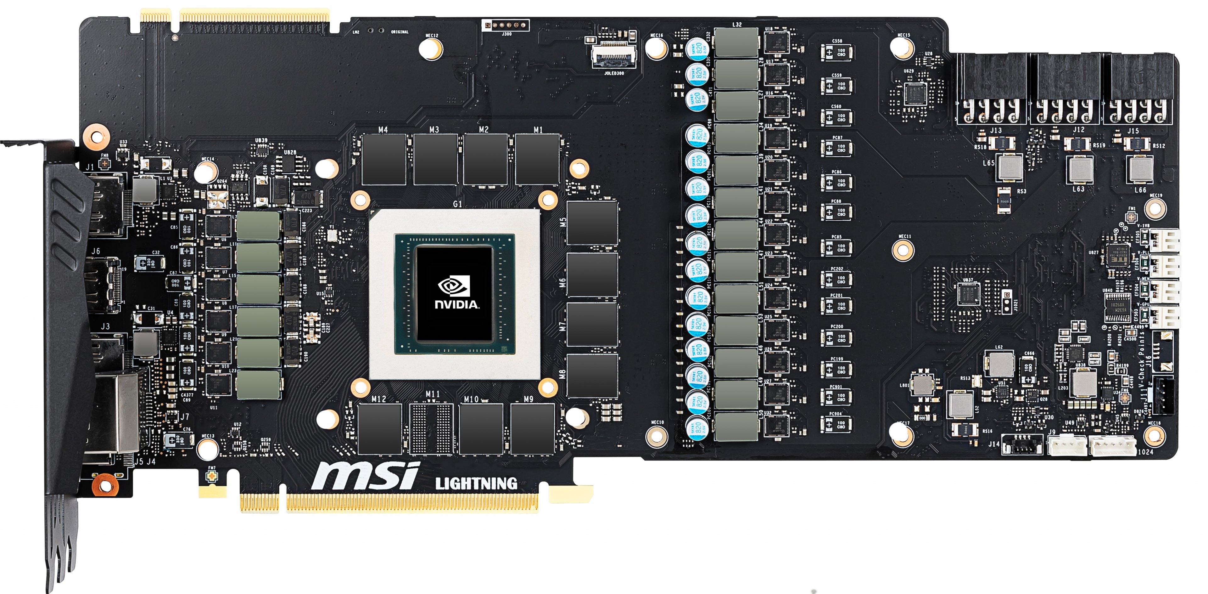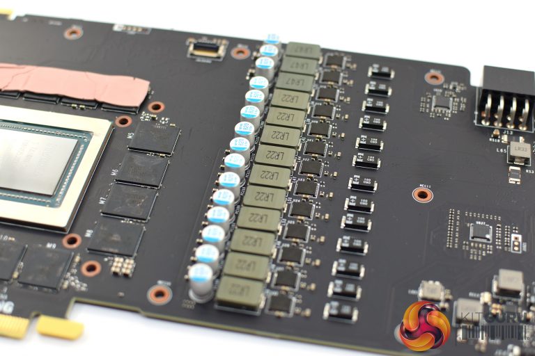 Die Karte hat 11 Vram Chips 19 Spannungsphasen und einige lr22 Bausteine und noch kleine rechteckige