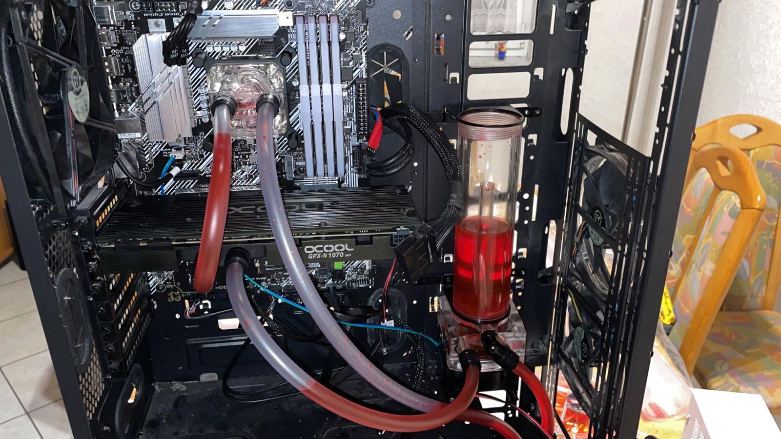 Ich habe schon länger in meinem PC eine Wasserkühlung mit Hardtubes. Diese hat bis am WE auch ohne Probleme funktioniert.