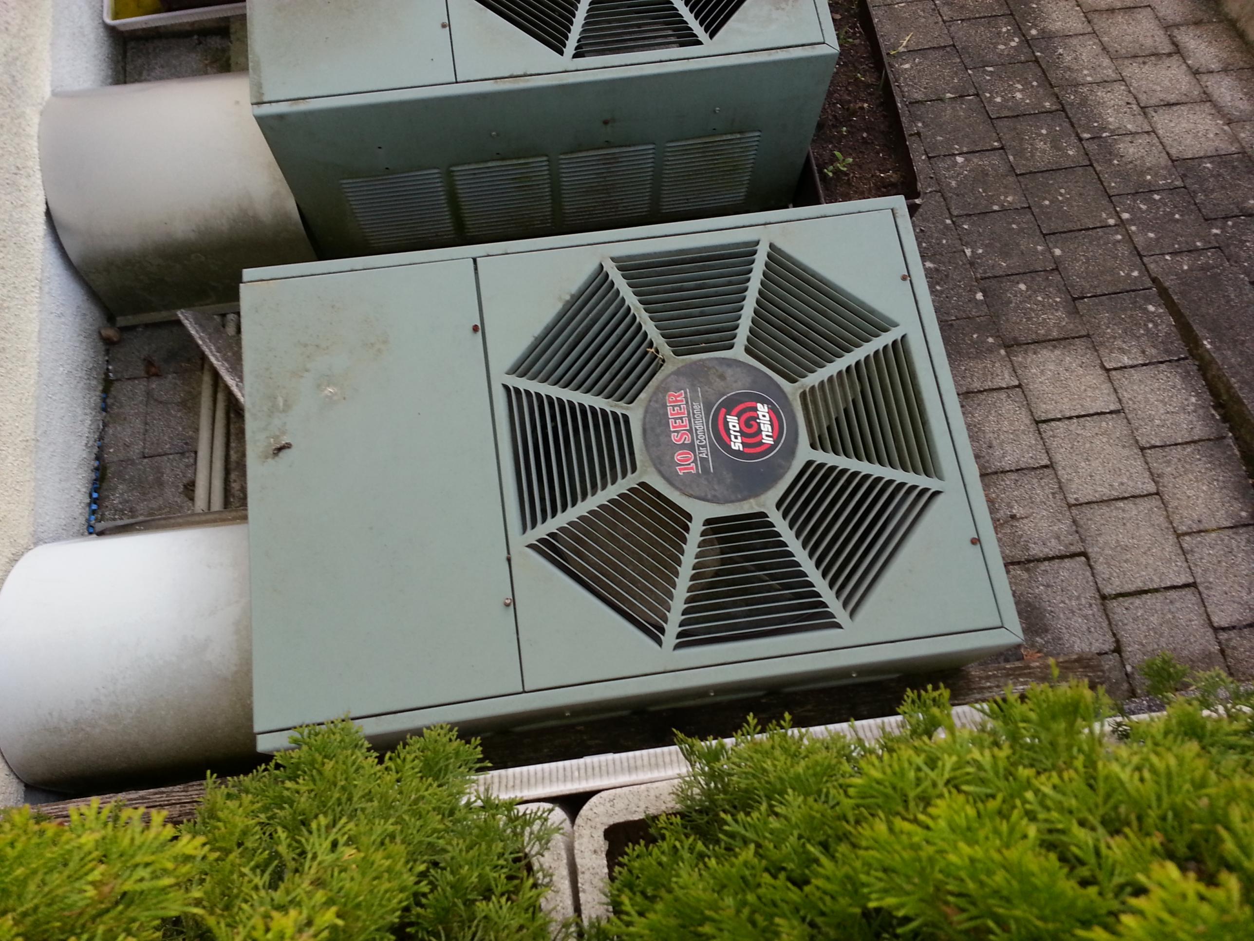 Zur Spezifikation: In der Schräge steht ein Rheem rhwa-1245a (mein Dad meinte, der gibt die Wärme der Luft an die Kühlflüssigkeit ab). Draußen steht ein Rheem RAKA-024JAZ (Hier nen paar Specs: http://www.rimsupply.com/pdf/a11_147.pdf). Verbunden sind beide mit Kupferleitungen mit irgendeinen ekiligen und ungesunden Kühlflüssigkeit. Mein Dad meinte die braucht die Pumpe als Schmiremittel.