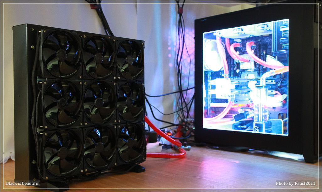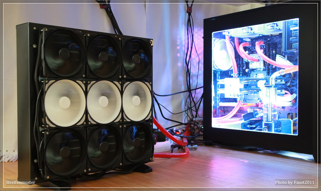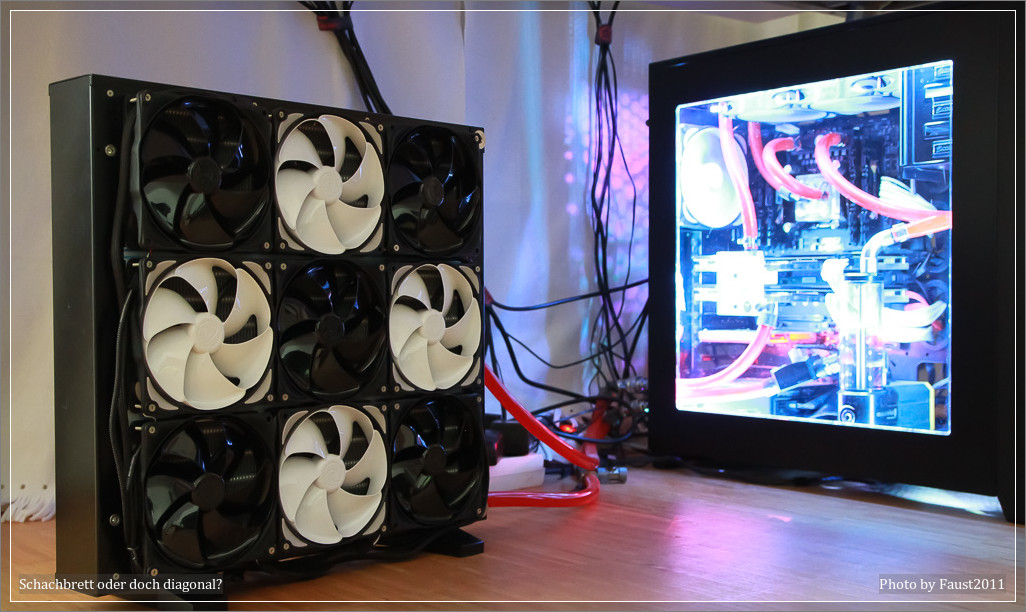 Ausgestattet mit einer ausreichend großen Anzahl an eLoop Lüftern in der BlackEdition konnte ich verschiedene Designs auf meinem externen Radiator ausprobieren, die ich Euch gerne vorstellen möchte.