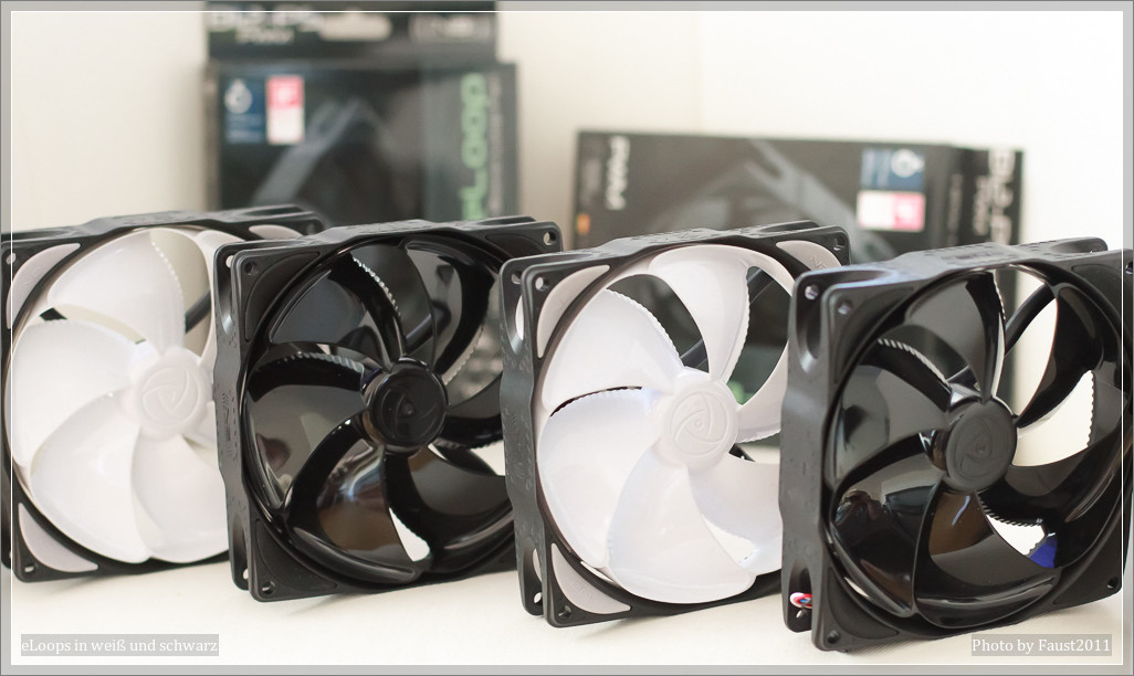 Ende April diesen Jahres hat Blacknoise die Lüfter aus der eLoop Serie in einer BlackEdition auf den Markt gebracht. Dabei handelt es sich um die PWM-gesteuerten Modelle in den Größen 120mm und 140mm (die exakten Bezeichnungen sind "B12-PS" und "B14-PS"). Für meinen Systemaufbau hat das sehr gut gepasst, da ich ausschließlich 120mm und 140mm eLoops in der PWM-Variante verbaut habe. Ein erster Eindruck der BlackEdition: