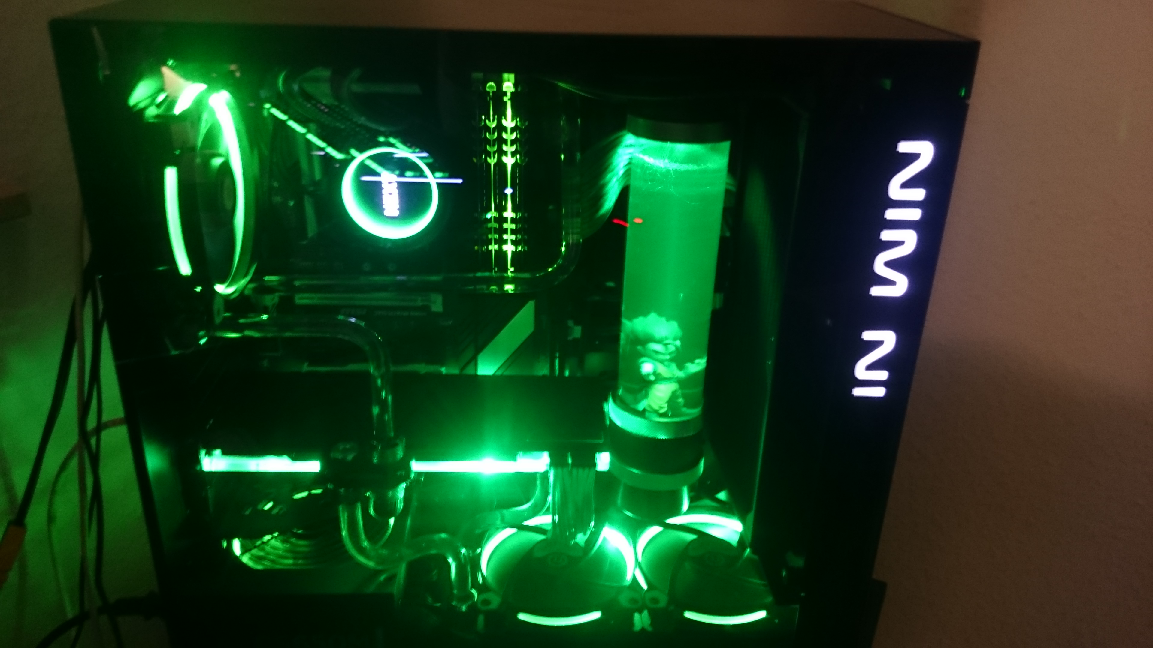 i7 4790K OC @ 4.8 mit 1,366 volt, Watercooled AIO NZXT Kraken x62, 280mm Radi
