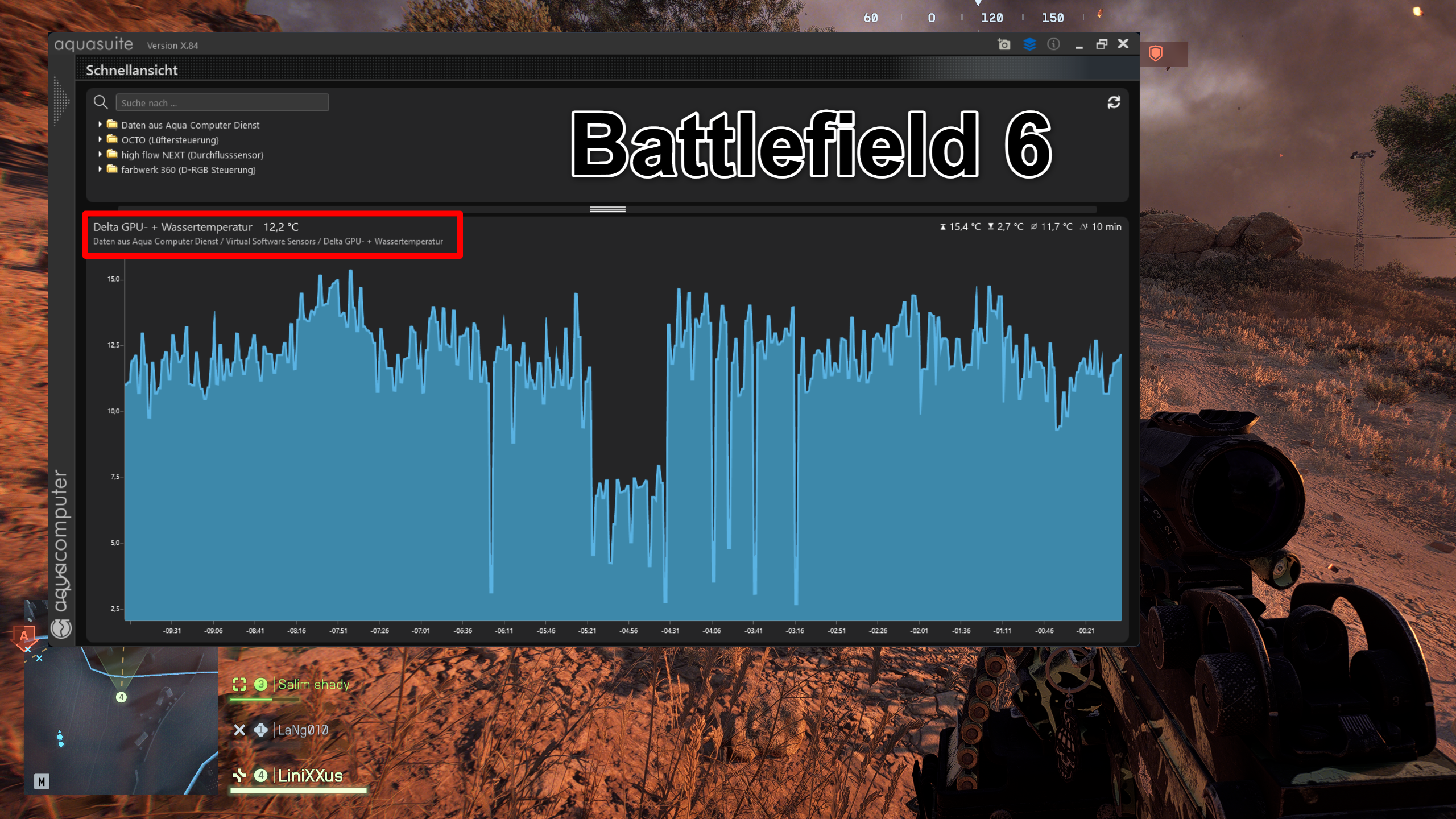 Sofern ein Wassertemperatursensor unmittelbar vor der Grafikkarte verbaut ist, wäre eine Delta Messung davon etwas aussagekräftiger.