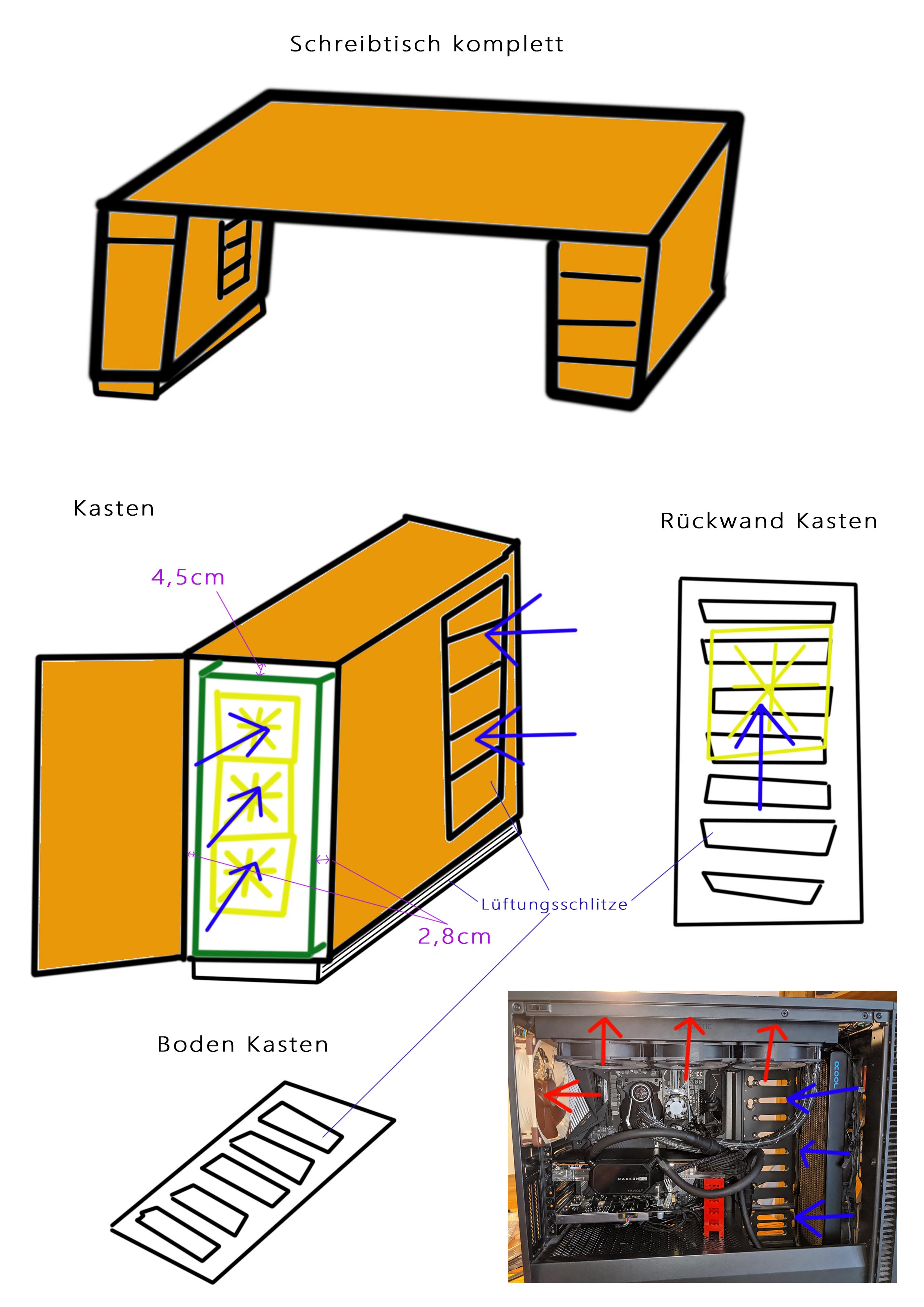 ich habe innen an der tür noch zwei noctua 120mm installiert, welche frischluft in den kasten befördern.