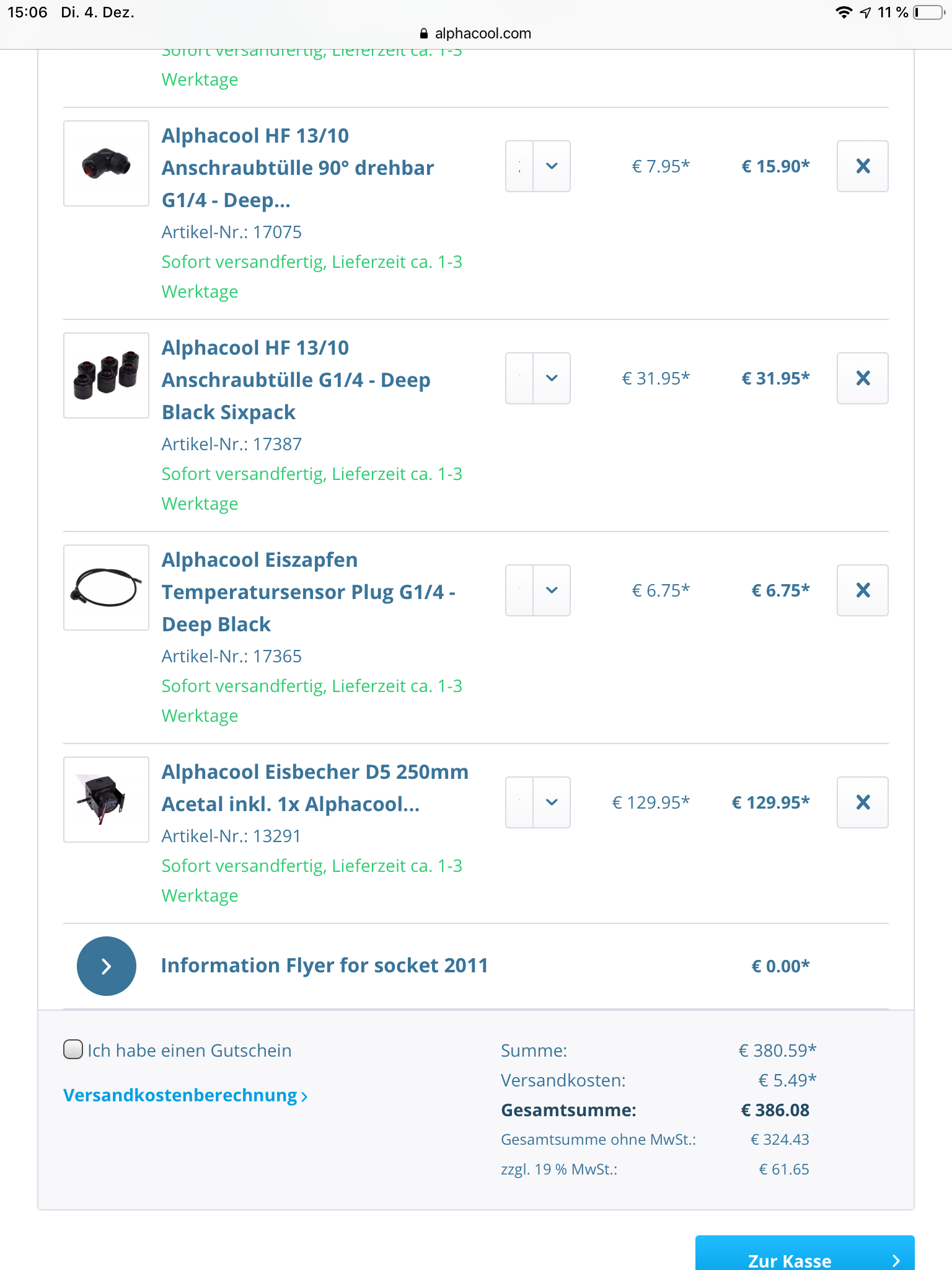 Und zu "alles von Alphacool bestellen" kennst du ja die Forum-Meinung. Wenn du's machen willst, gerne. Kommst aber mit Barrow, Hardwarelabs und Heatkiller günstiger und "besser/sicherer" weg.