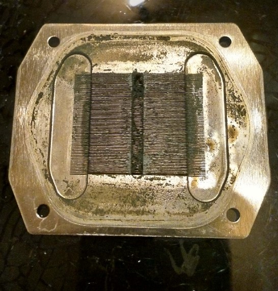 Sollte es aber. Das Wasser wird mittig auf die Kühlfinnen des Blocks geleitet.