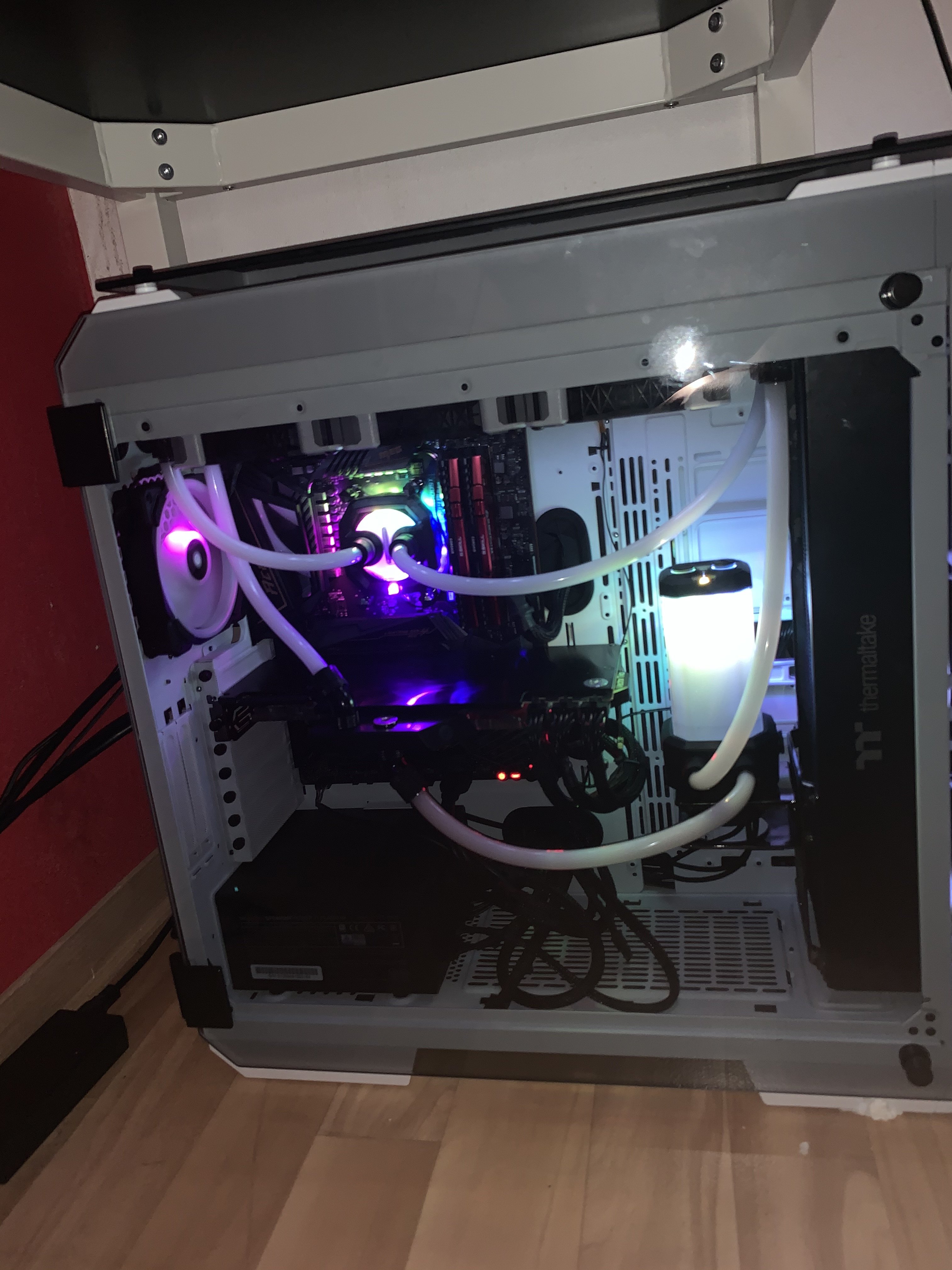 corsair Produkte bis auf den gpu block und 1 Radiator. In meinem alten Case war nur platz für einen 120 und einen 360 Radiator die Temperaturen waren so schlecht geworden das nach ca 1 stunde Spielen der PC sich abschaltete, nun habe ich gestern auf das Thermaltake View 71 Case gewechselt da es deutlich mehr platz als das Crystal 570x hat. Vorne ist ein 420 Radiator (6 cm dick) der von 2 140 mm Lüftern gekühlt wird (passen nur 2 hin oder 3x 120) oben der 360 mit 3x corsair Mp 120 Lüfter, wenn ich jetzt furmark laufen lasse, bleibt die gpu stabil bei 62 grad (bei Luft Kühlung ca. 74 grad) aber bei ca der helfte des Benchmarks, wird das Bild schwarz und der PC reagiert nicht mehr auch kein Ton mehr. In corsairs Lüfter Steuerung icue kann man Temperatur Protokolle anlegen, dies haben mich dann etwas verwundert die Wassertemperatur bleibt ca 10 min stabil bei 31 grad aber innerhalb von 5 sek steigt sie auf über 50 und hoher, bis er sich abschaltet, da kommt mir nur in den sind, dass die pumpe ausfällt, an der Kühlleistung kann es ja jetzt nicht mehr liegen?