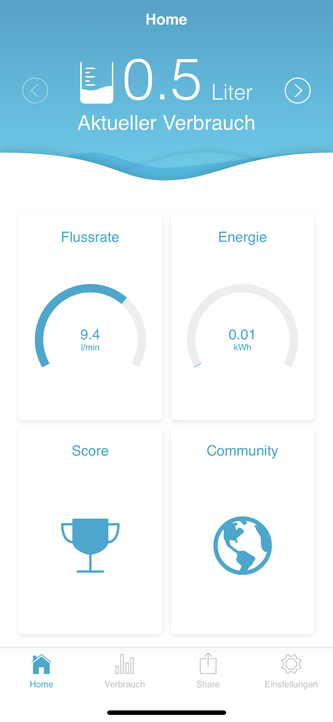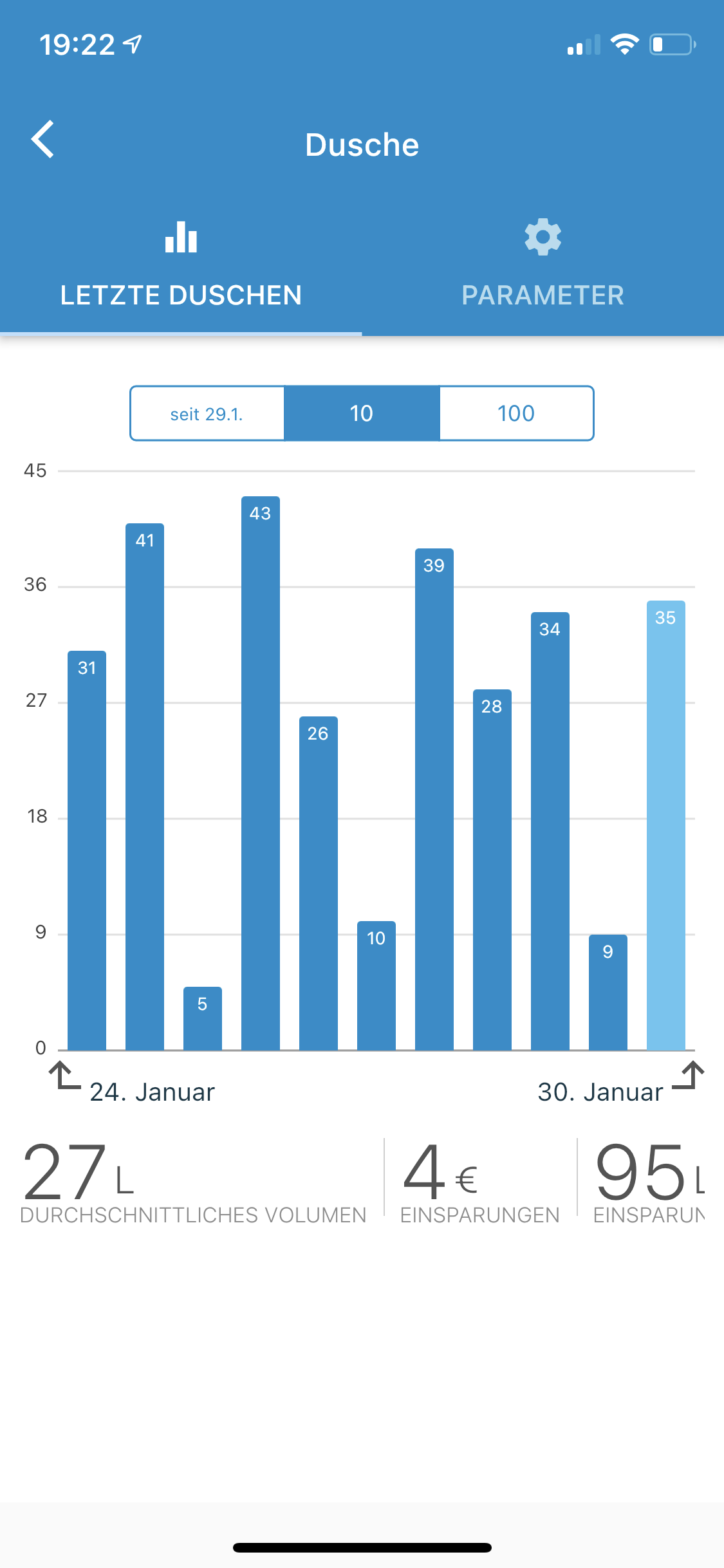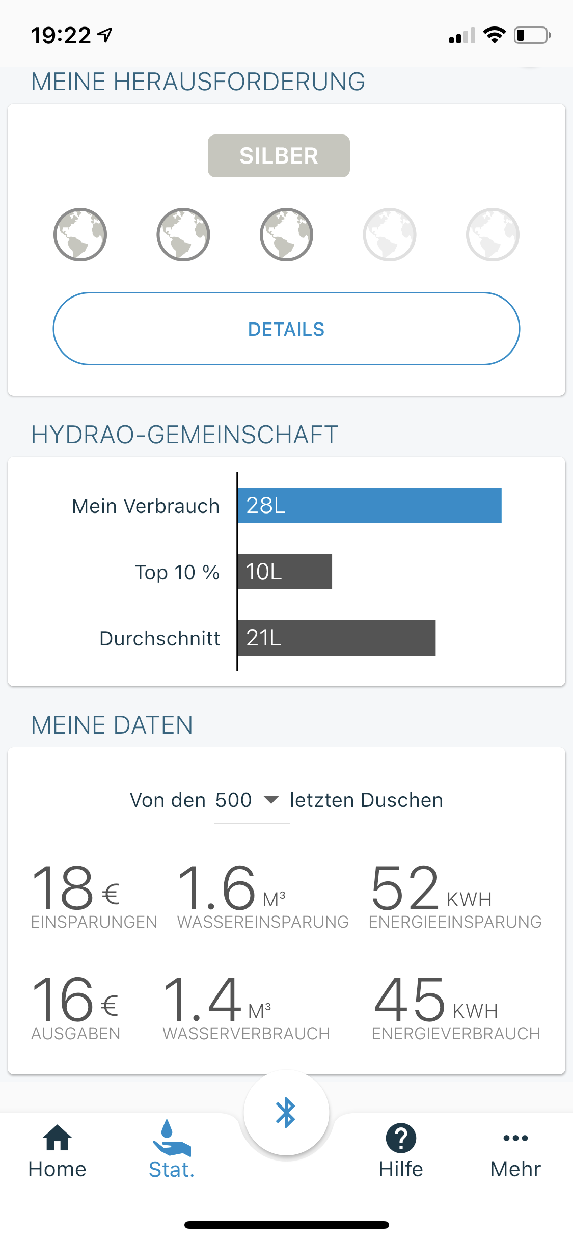 Als Referrenzdusche hab ich da den täglichen Durchschnitt unserer beider Duschvorgänge eingetragen. Anhand der Informationen zeigt einem die App dann an, welche Kostenersparnisse man hat.