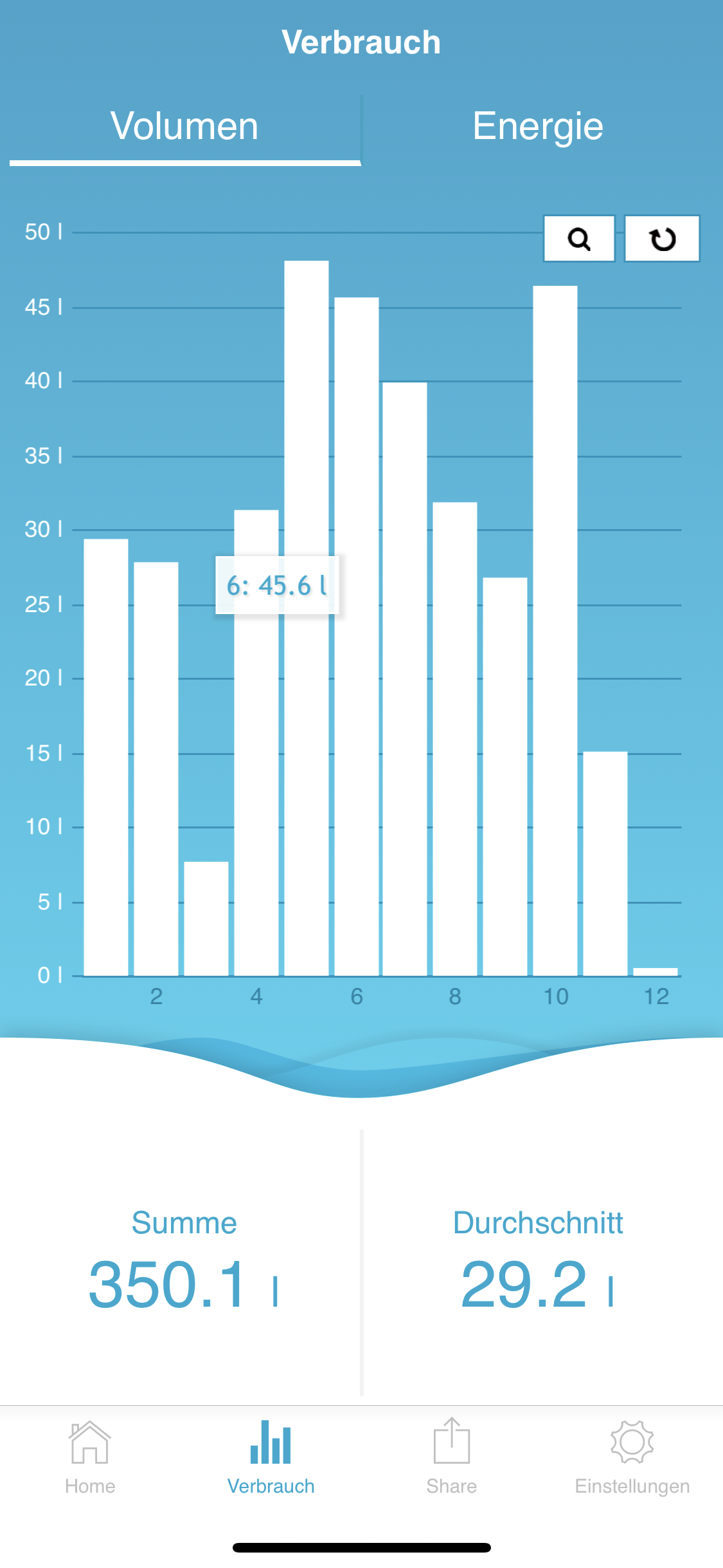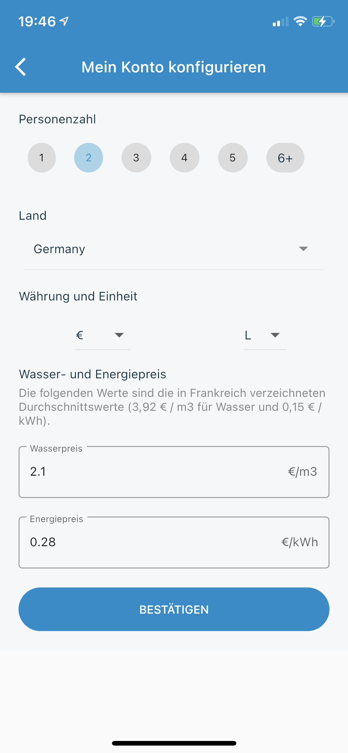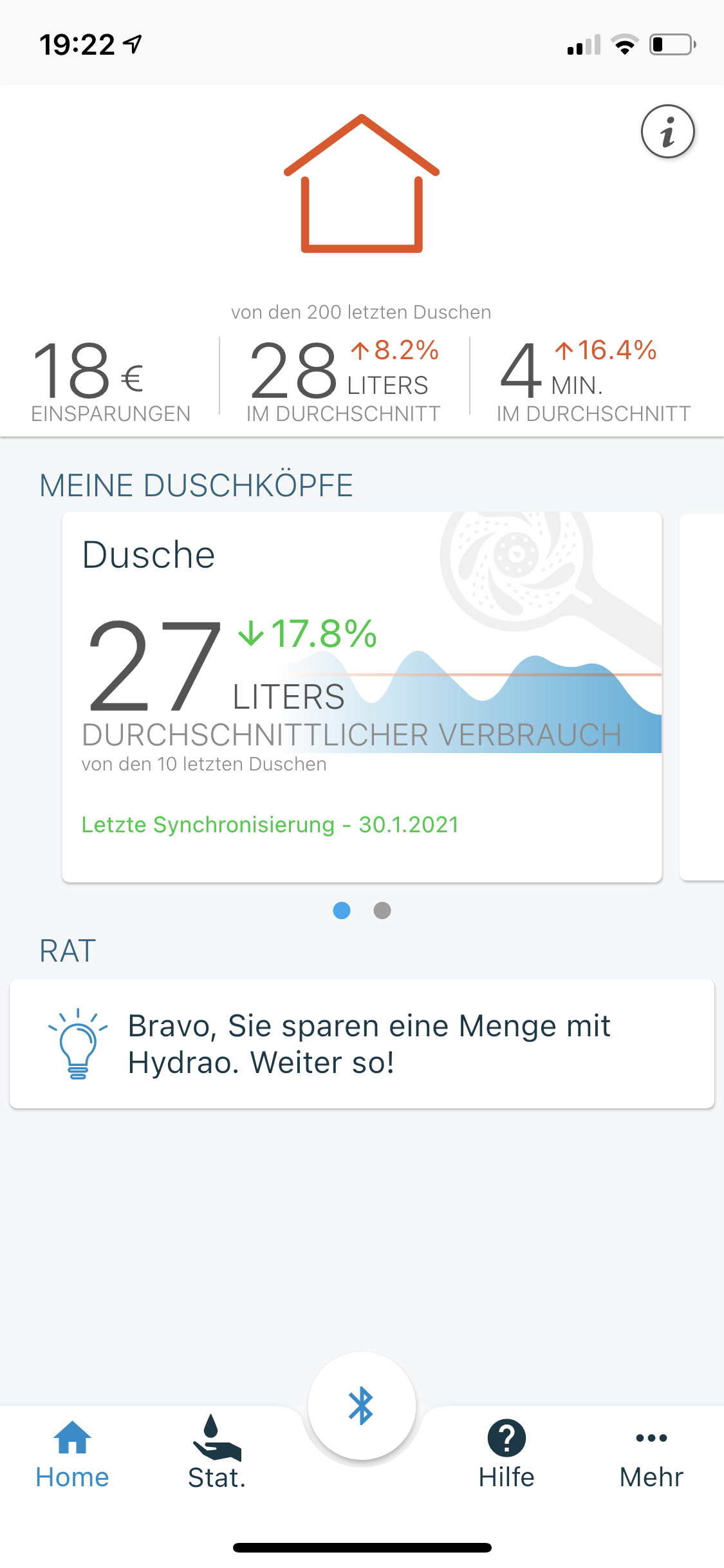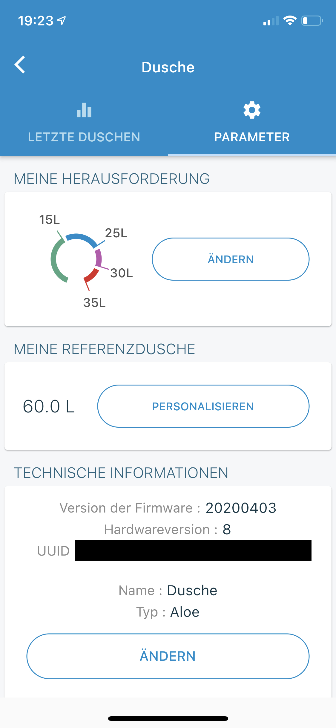 Als Referrenzdusche hab ich da den täglichen Durchschnitt unserer beider Duschvorgänge eingetragen. Anhand der Informationen zeigt einem die App dann an, welche Kostenersparnisse man hat.