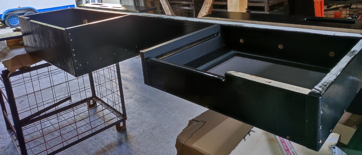 Die Aussparungsformen unterhalb der Mainboards. Dort sind 2x NF-A20 (200mm!) verbaut. Die Netzteile geben ihre Abluft auch nach unten raus. Der "Wartungskastendeckel" unten hat unten die zwei Aussparungsformen um die Luft komplett durch zu lassen.