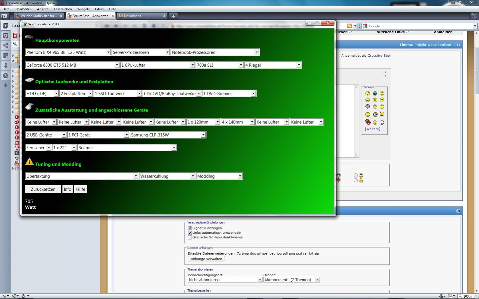 So, nun zum eigentlichen, dein Programm brechnet 438Watt (ohne Monitor, Drucker usw..)