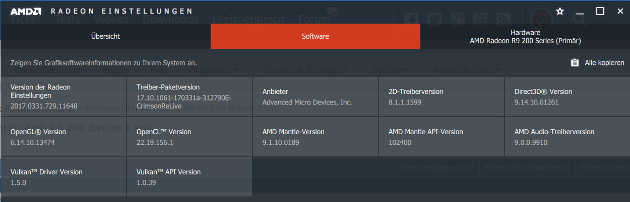 >> AMD R9 290 & aktuelle Crimson-Treiber 17.4.1 (ist aber mit anderen, vorherigen drivern dasselbe)