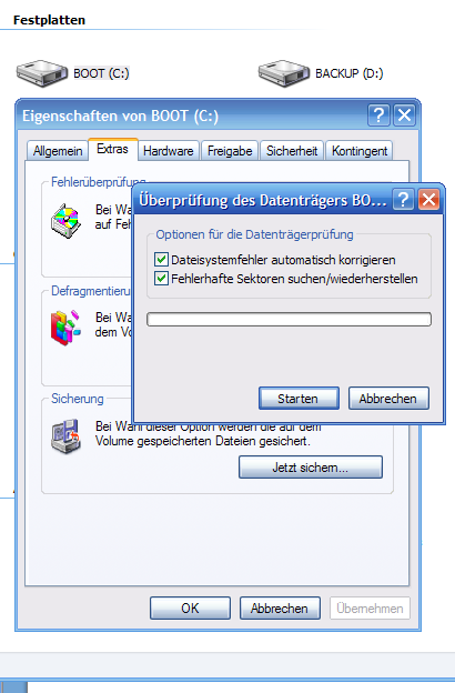 Achja: Auch ein chkdsk /r hat nichts gebracht, es wurde zwar angeblich etwas repariert, davon ist nur nichts zu sehen..