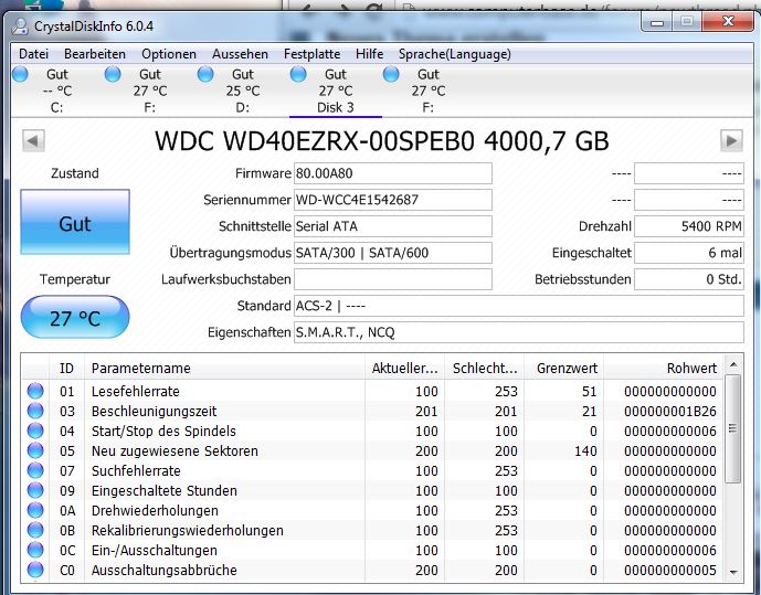 Ich habe ein Problem mit meiner neuen Western Digital Green 4 Terrabyte Festplatte.