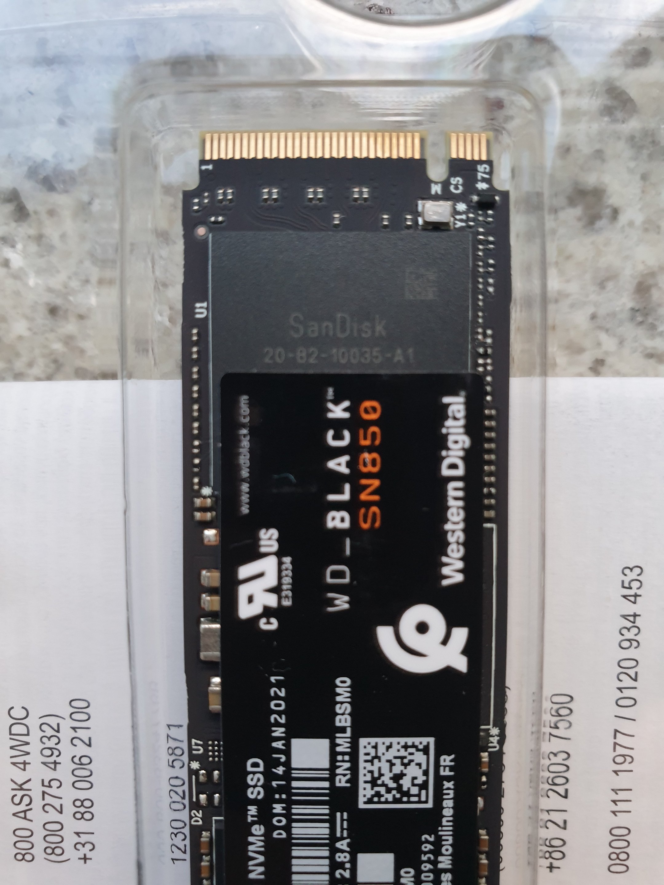 Die SSD mit der Firmware 614300WD hat, wie ich bereits vermutet hatte, einen anderen Controller verbaut! Der Controller für den das Firmwareupdate mit dem Fix erschienen ist, hat die Bezeichnung 20-82-10034-A1. Der Controller ohne verfügbares Update trägt die Bezeichnung 20-82-10035-B1. Hier ein Bild der beiden SSDs: