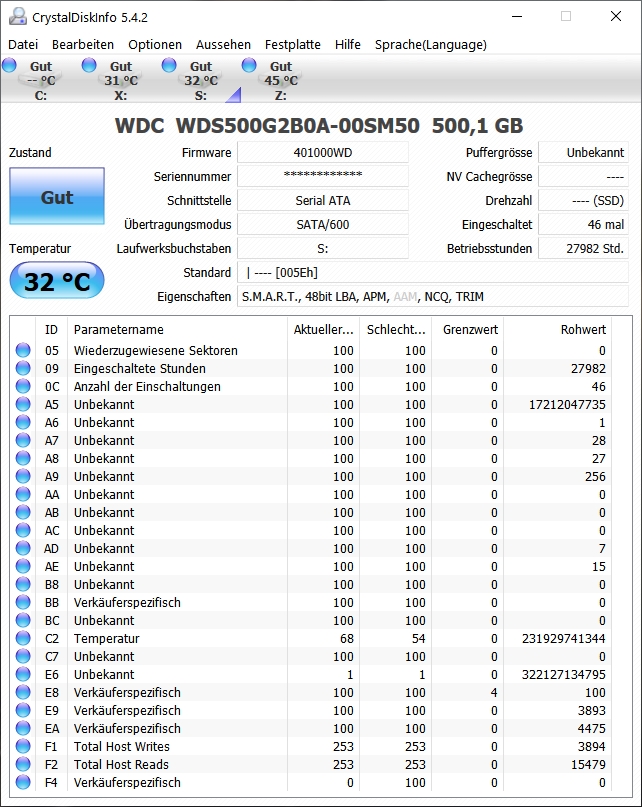 Mit dem SSD Read Speed Tester kann ich leider nicht mehr testen, da ich meine WD Blue formatiert habe, nachdem ich die Daten da endlich runter hatte đ