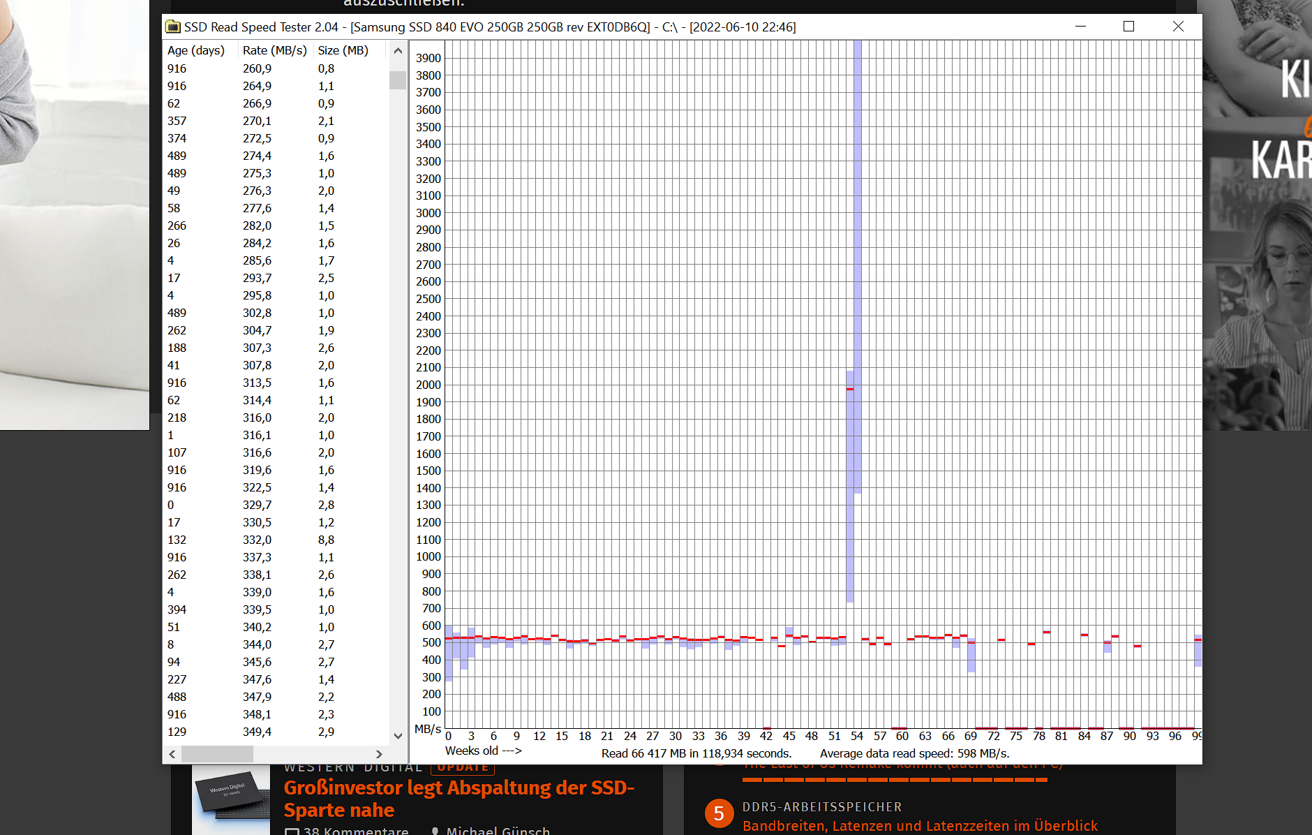 Danke für eure Screenshots! Ehrlich gesagt verwirren mich die Graphen von dem Tool inzwischen selbst. Wofür steht eigentlich die rote Linie? 😅 Aber wenn oben links nichts im einstelligen Bereich steht und unten rechts der Average Speed bei ~500 MB/s (SATA) steht, dann sollte alles passen. Bei den betroffenen sind es ja nur noch ~50 MB/s Average.