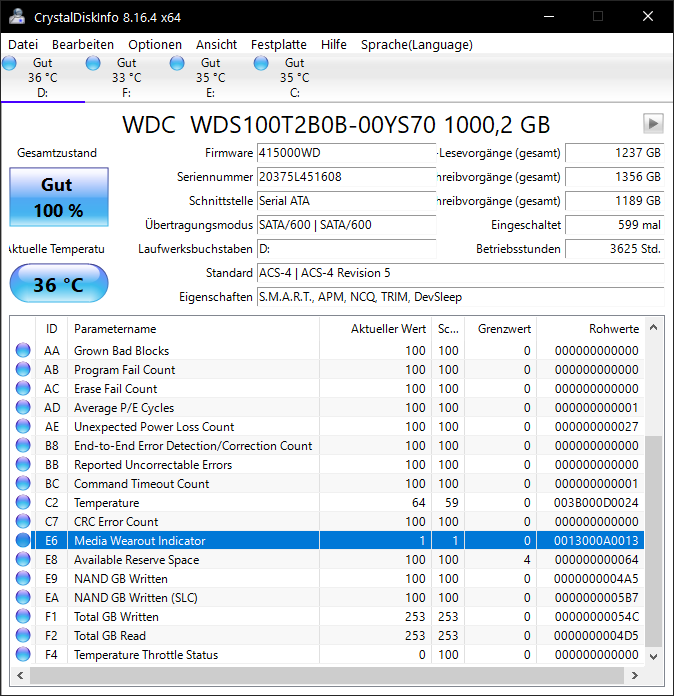 Den refresh hat eine SSD, die im täglich laufenden PC verbaut ist, selbstständig zu tun. Andrer SSDs können das schließlihc auch, auf meiner Crucial M500 960GB von 12/2013 sind die Dateien teils 3101 Tage alt und sie sind fast alle mit 300 MB/s und mehr durch das Tool lesbar.Luthredon schrieb:Bin ich alleine, oder finden andere das Problem auch 'erwartbar'?