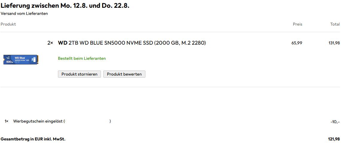 Nein, ist nicht gebraucht. Dort sind aber (ähnlich wie beim Amazon) verschiedene Händler vertreten und über diese "Masche" hat, glaube, Igor schon aufgeklärt. Der Händler arbeitet jetzt einige Tage (hoffentlich nicht Wochen!) mit dem Geld von @qu1gon (und tausend anderen, die an ein vermeintliches Schnäppchen geglaubt haben) und deklariert das Ganze "mit Bedauern" als ein Preisfehler mit Angebot 1TB oder gar 2x 500GB stattdessen zu nehmen. Anschließend wird das Geld zurück erstattet. Warum Galaxus das duldet? - gute Frage, aber evtl. für gute Statistiken, da viele neue Accounts erstellt wurden (wegen dem NL-Gutschein), auch wenn's nur "Leichen"-Accounts sind.SirMarc schrieb:Ist Galaxaus nicht einer wo gebraucht verkauft.