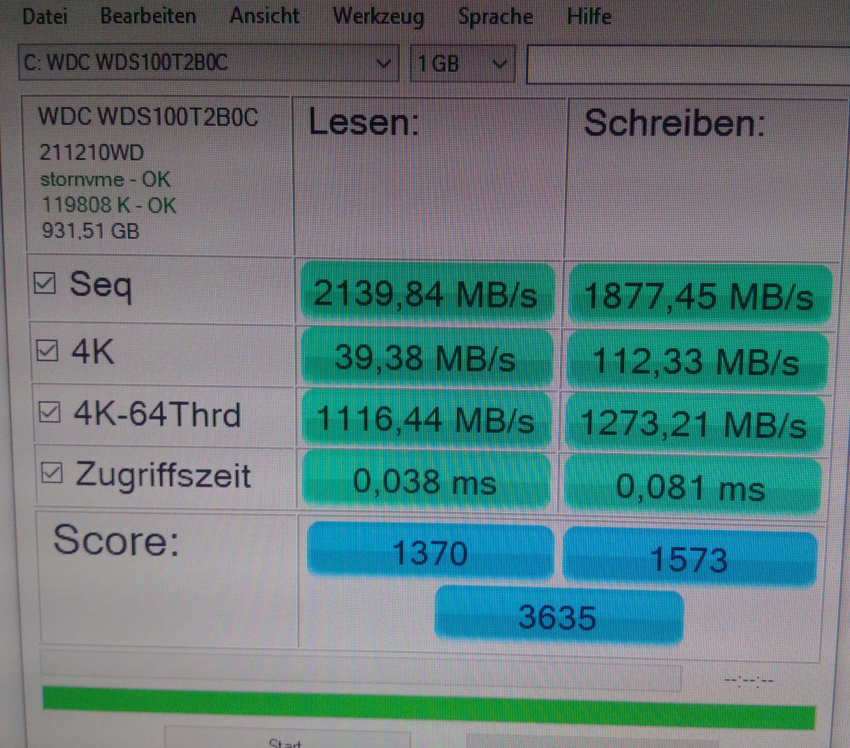 Ich habe heute die 1TB Version von September 2021 für jemanden anderen mit einem 10400 verbaut. Die AS SSD Leistung entspricht R2100/W1800MB/s. Ich habe hier mit 10GB getestet. Da ist nütrlich nichts für den 4K Test, wo dann lange 116MB Schreiben rum kommen.