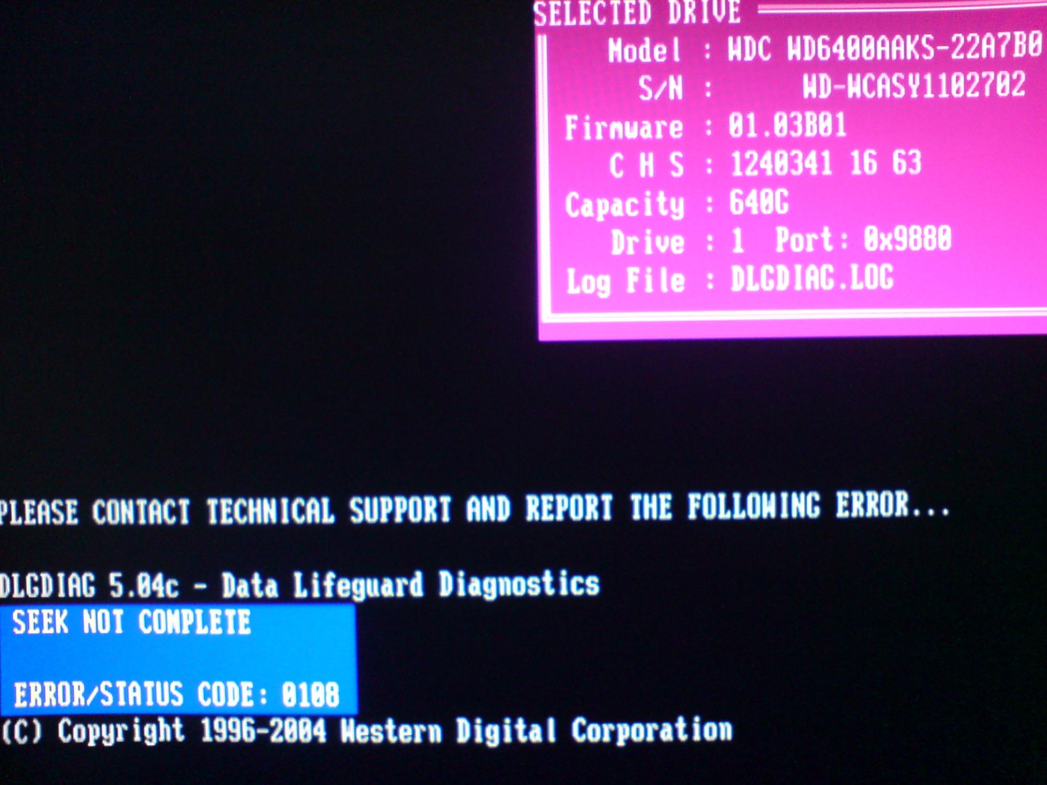 ...nun, ich konnte am anfang kaum booten. Hat sich herausgestellt, dass das board mit 8gb ram nicht umgehen kann, also war ich mit 2gb deutlich besser dran. Dannach konnte ich zb. windows nicht zuende installieren, da habe ich wieder gedacht das liegt am ram und habe alles versucht aber es wurde nicht besser. Doch gleichzeitig, kamen schon beim booten komische fehlermeldungen wie: Sec Slave Hard Disk SMART Status BAD, Backup and Replace - nun ich dachte das liegt wieder am board, der hat irgendwas, ich meine eine unbenutzte festplatte kann doch nicht kaputt sein. Dann habe ich mal aus sicherheit eine von WD entwickelte tool, Lifeguard benutzt, womit man die platte durchscannen konnte und es gab eine fehlermeldung: Seek Not Complete - Error/Status code: 0108.