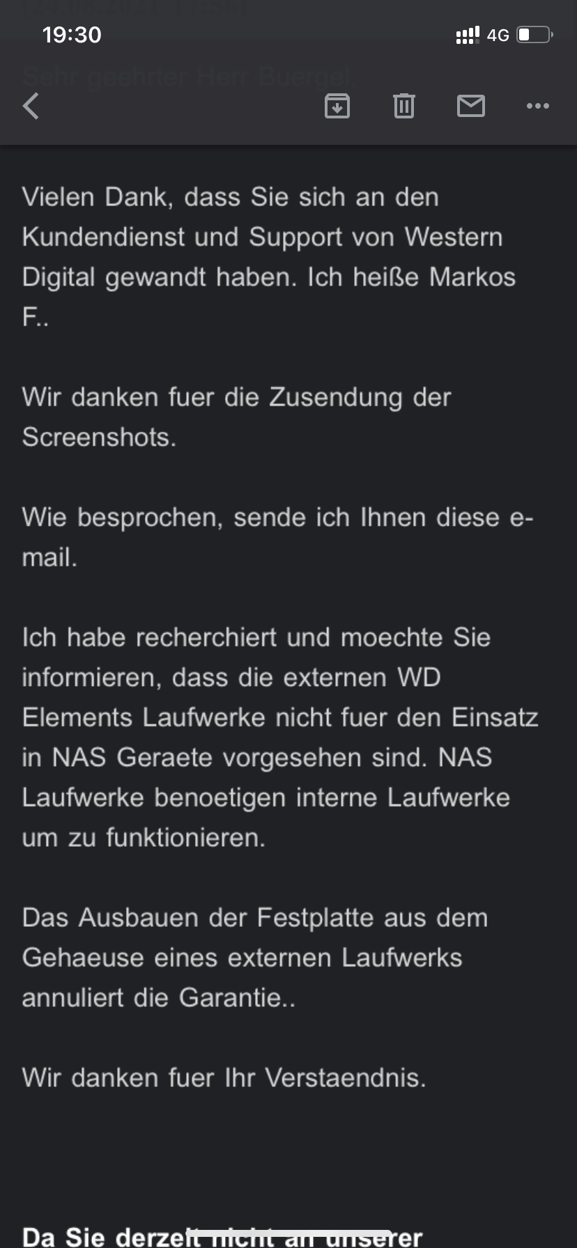 Obwohl die Platten alle nur eine Woche alt sind, vermute ich, auch der WD Support lässt mich im Stich, hatte am Telefon irgendwie nicht das Gefühl, dass man mir hier aus der Ferne helfen kann.