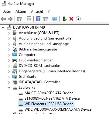meine Freundin hat mir ihre externe Festplatte Western Digital Elements (500GB) gebracht, da diese an ihrem Win10 Lenovo Notebook im Explorer nicht mehr erkannt/angezeigt wird. Nun habe ich diese an meinen Desktop (ebenfalls Win10) angeschlossen -> typisches Windows "Ding-Dong" Signal beim anschließen an den USB-Port - Festplatte leuchtet auch normal.