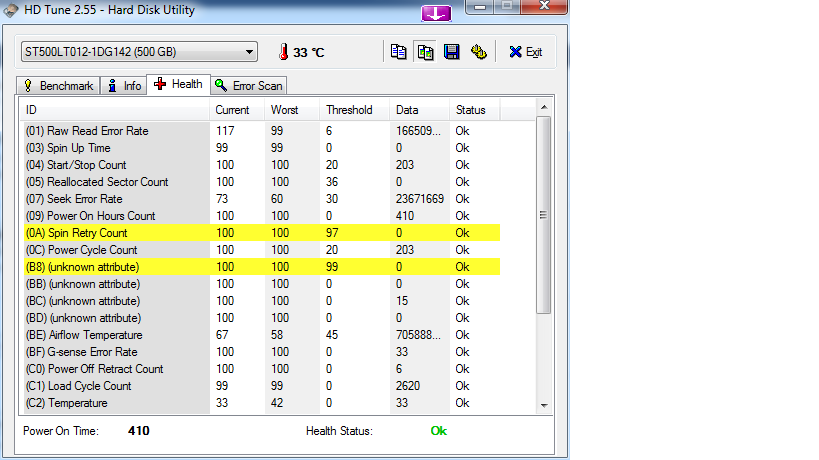 Hab in meinem Notebook (max 6 monate alt) ne Seagate Platte drin die über Crystaldiskinfo alles gut anzeigt aber mit HDTune auch schon gelbe sachen hat ...