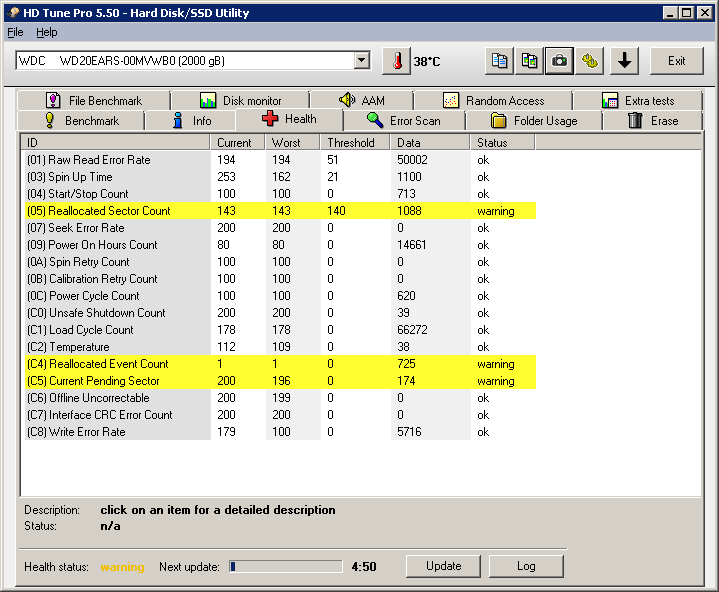 HD Tune Pro & Crystal Disk Info zeigen Fehler in den Smart Werten an. WD Data Life Diagnostics meint es wäre alles gut...