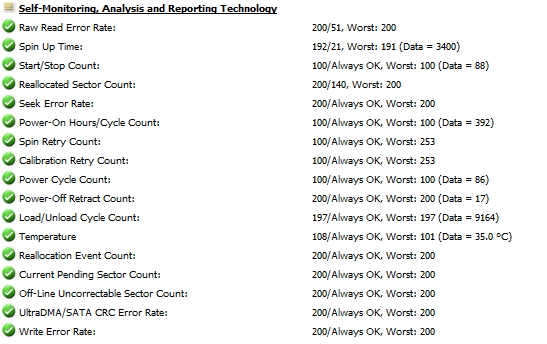 Der wichtigste Wert ist "Wiederzugewiesene Sektoren" oder auch "Reallocated Sector Count" genannt.Schlechte Werte bei diesem, deuten auf Oberflächenschäden hin.Ist aber I.O. bei dir.