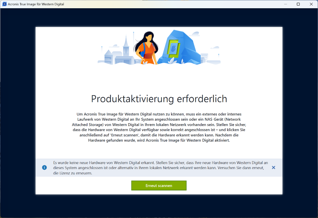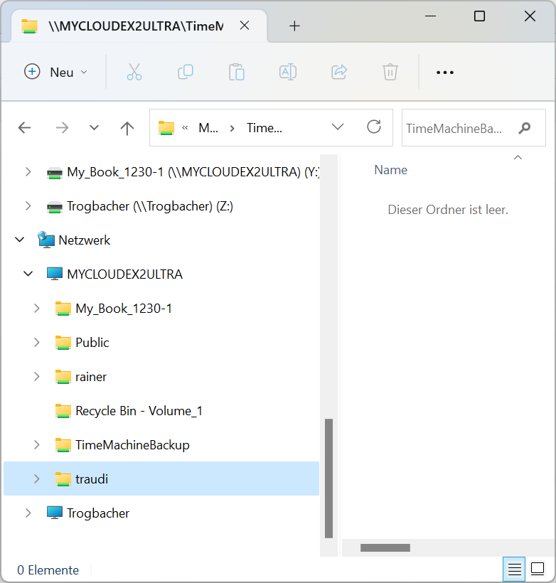 Acronis True Image auf meinem Windows 11 - Stand-PC findet WD My Cloud EX2 Ultra beim Programmstart nicht, obwohl das Laufwerk korrekt an der Fritz!Box angeschlossen ist (siehe Screenshots). Von meinem Notebook aus (ebenfalls Win11 und im gleichen Netzwerk) kann ich Acronis True Image problemlos starten und sichern.