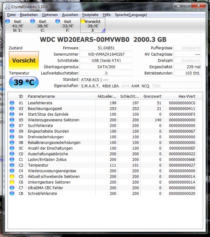 Wenn die Anzahl sich nicht groß verändert, dann ist die Platte stabil. Selbst wenn die Sektoren als fehlerhaft markiert werden sollten, wäre das noch okay.