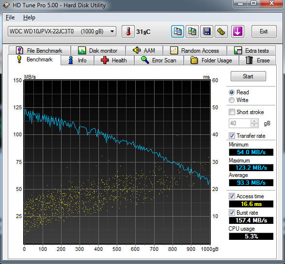 Zum anderen wirbelt das von uns getestete 1-TB-Spitzenmodell WD RED WD10JFCX im Lager der 5.400er Laufwerke ordentlich Staub auf, da es so gar nicht dem Bild der zuverlässigen, aber langsamen NAS-Festplatte entspricht. Die WD10JFCX verdrängt die WD Scorpio Blue WD5000LPVT als bisher schnellstes 5.400er Laufwerk und schlägt damit in der Gesamtwertung auch 7.200er Laufwerke wie die Hitachi Travelstar 7K750 und die Toshiba MK7559GSXP.