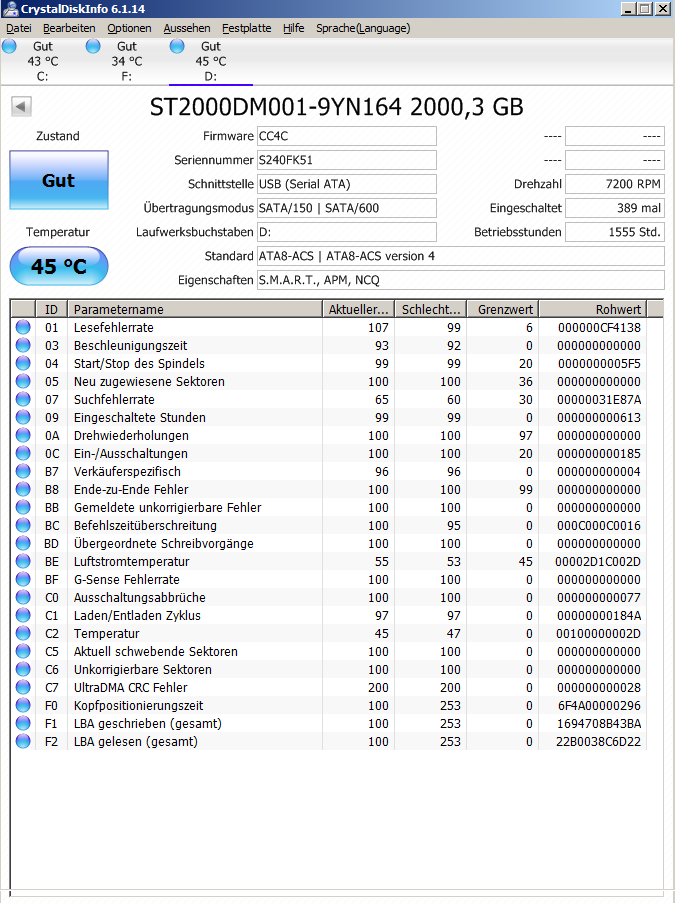 Da ich kein Experte auf diesem Gebiet bin, würde mich interessieren, ob auf die Aussage von CrystalDisk verlass ist oder, ob hier möglicherweise ein Irrtum vorliegt. Die einen sagen so, die anderen so.