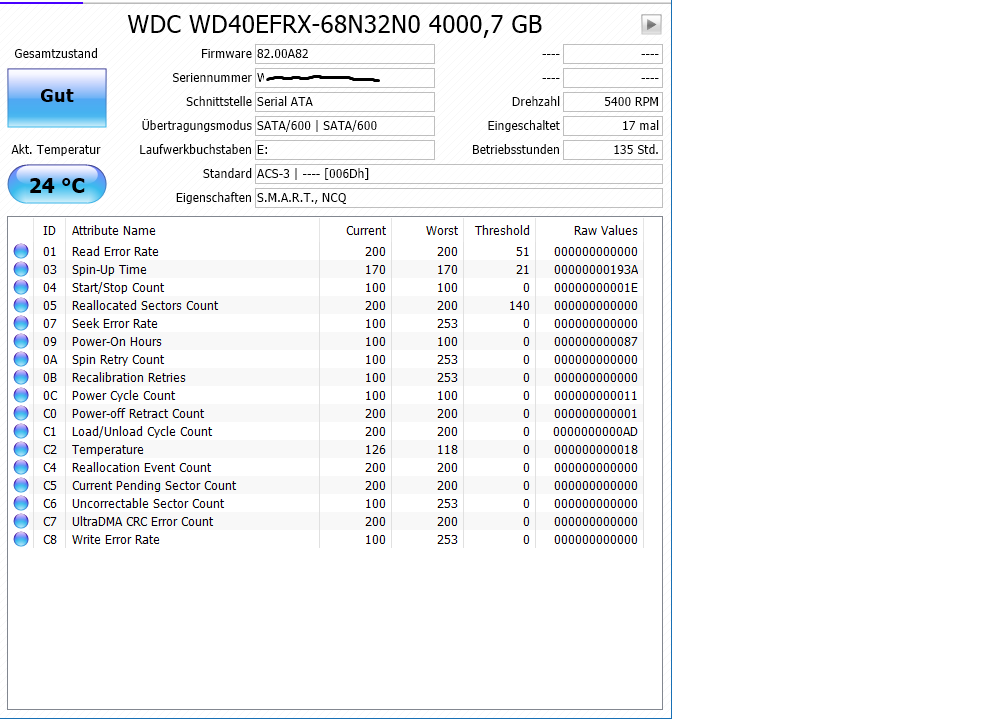 Ich bin mit der WD red ja eigentlich sehr zufrieden. Leider fällt mir am abend, wenn es wirklich leise ist auf, dass sie eine Art hochfrequentes Pfeifen/sehr hohes rauschen hat. Ich bin da sehr sehr empfindlich, aber ich höre das 1.5m nebem dem PC leise, aber störend (Case Fractal R5).