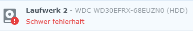 https://support-de.wd.com/app/answe...stern-digital-dashboard:-fehlercodes#subject2Der vorherige Selbsttest wurde abgeschlossen, wobei das Leseelement des Tests fehlgeschlagen ist. Testen Sie erneut, nachdem Sie die Verbindungen überprüft haben. Ersetzen Sie das Laufwerk, wenn der Fehler wiederholt auftritt.